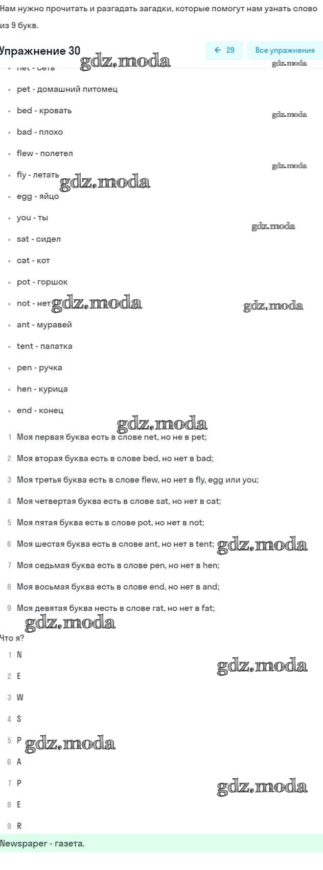 ОТВЕТ на задание № 30 Рабочая тетрадь по Английскому языку 5 класс Афанасьева Rainbow
