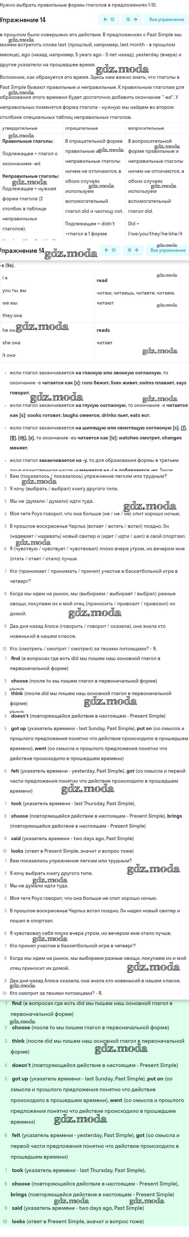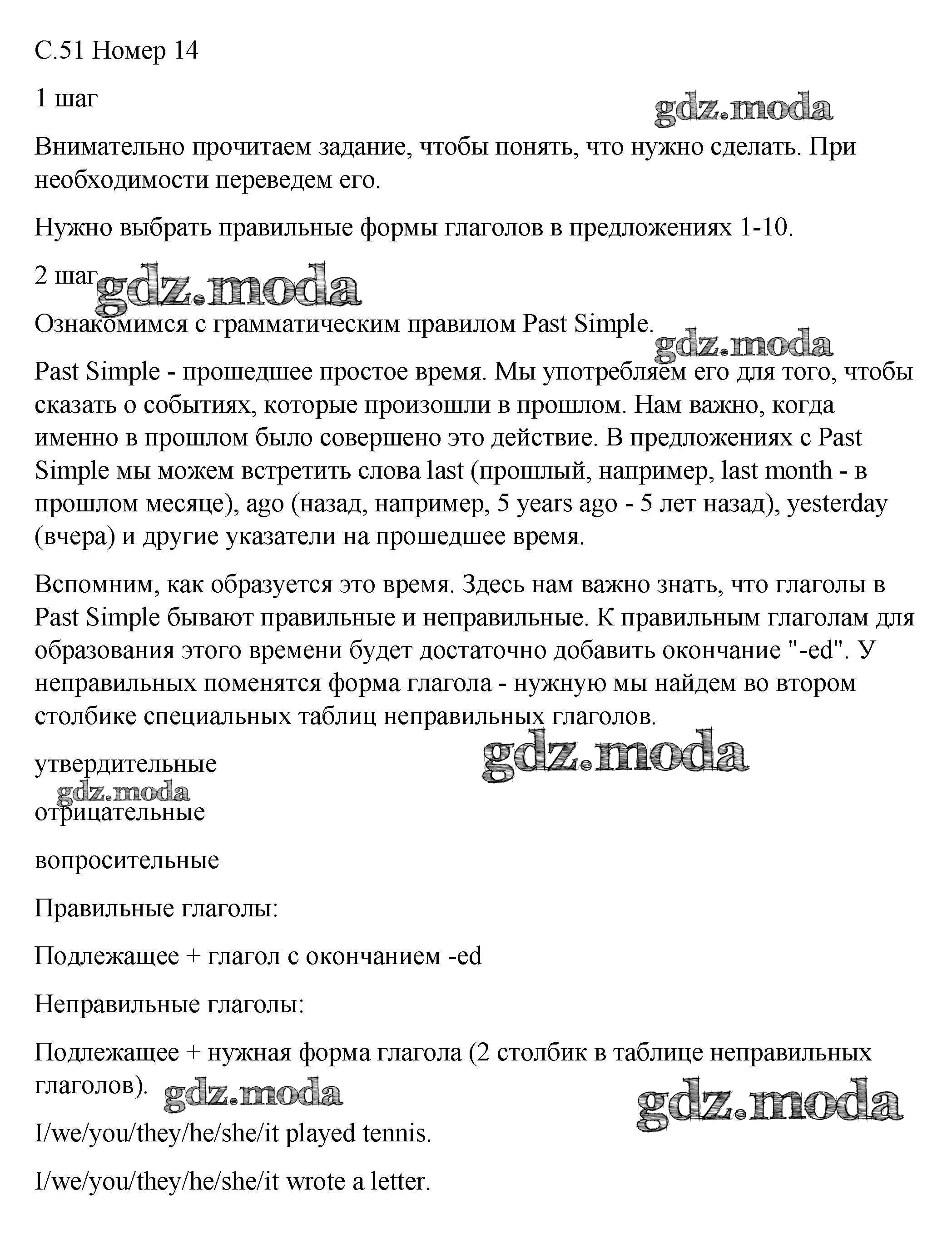 ОТВЕТ на задание № 14 Рабочая тетрадь по Английскому языку 5 класс Афанасьева Rainbow