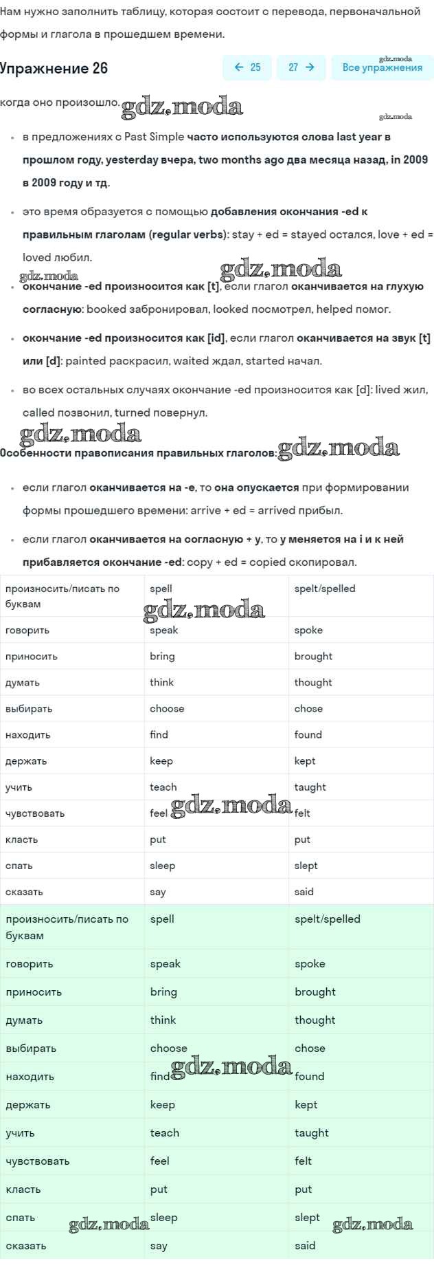 ОТВЕТ на задание № 26 Рабочая тетрадь по Английскому языку 5 класс Афанасьева Rainbow