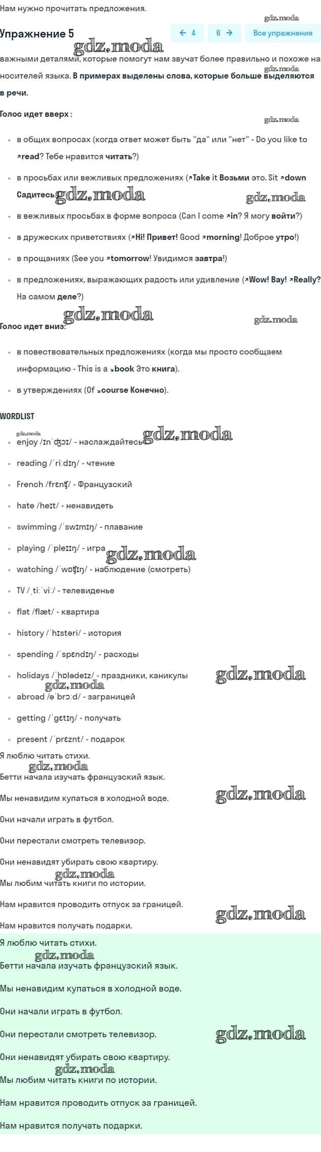 ОТВЕТ на задание № 5 Рабочая тетрадь по Английскому языку 5 класс Афанасьева Rainbow