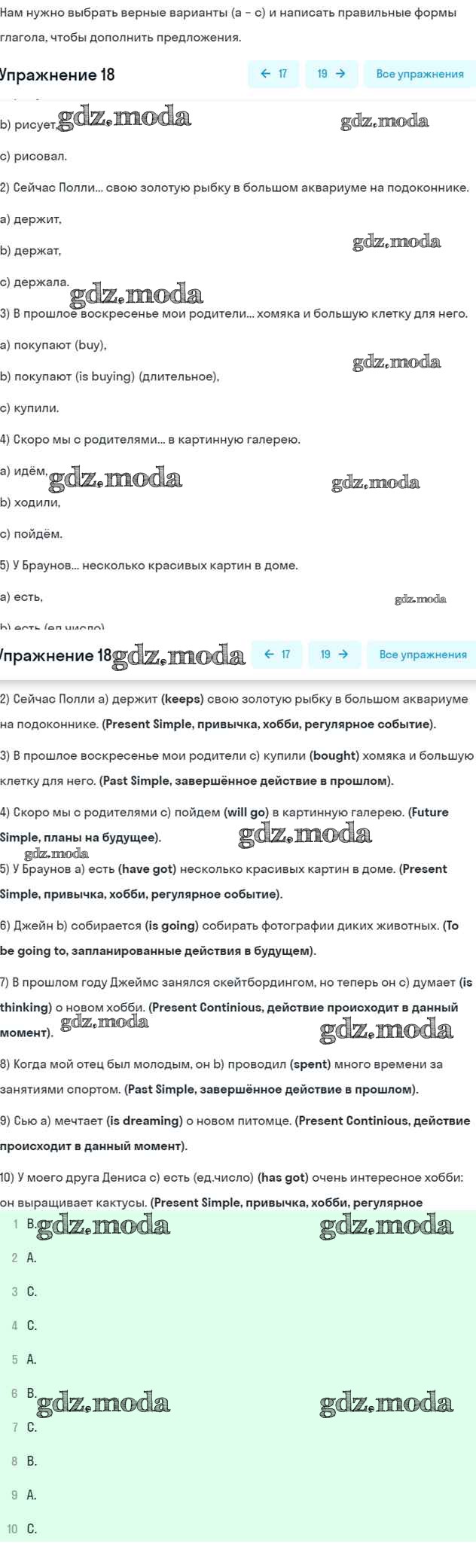 ОТВЕТ на задание № 18 Рабочая тетрадь по Английскому языку 5 класс Афанасьева Rainbow