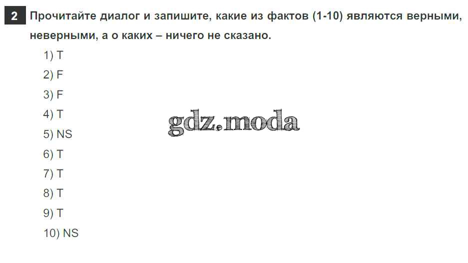ОТВЕТ на задание № 2 Рабочая тетрадь по Английскому языку 5 класс Афанасьева Rainbow