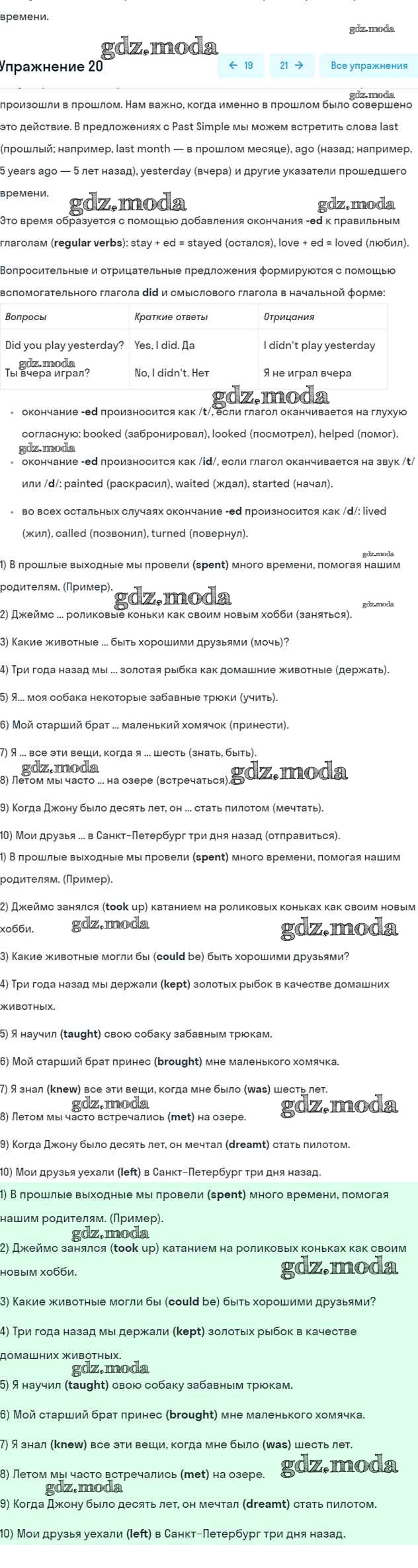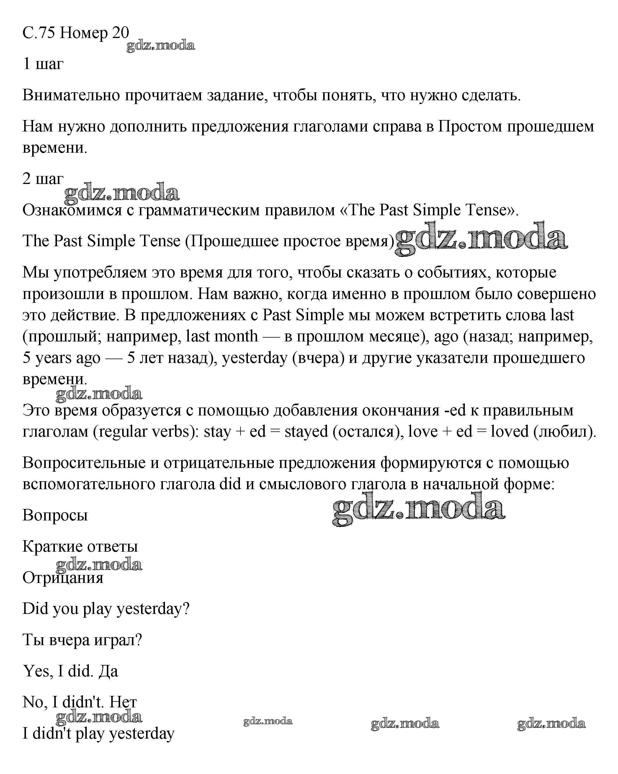 ОТВЕТ на задание № 20 Рабочая тетрадь по Английскому языку 5 класс Афанасьева Rainbow