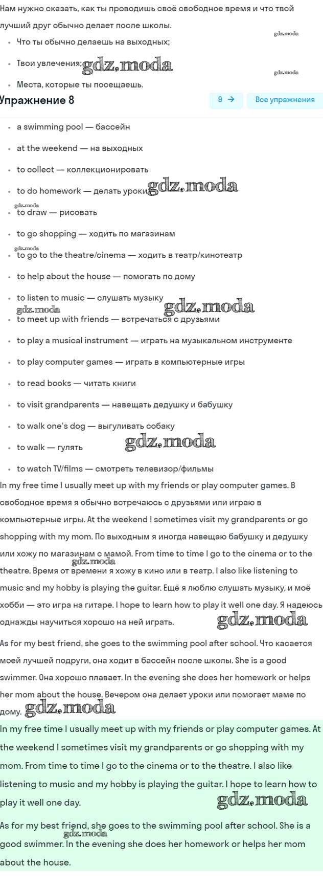 ОТВЕТ на задание № 8 Рабочая тетрадь по Английскому языку 5 класс Афанасьева Rainbow