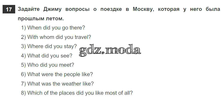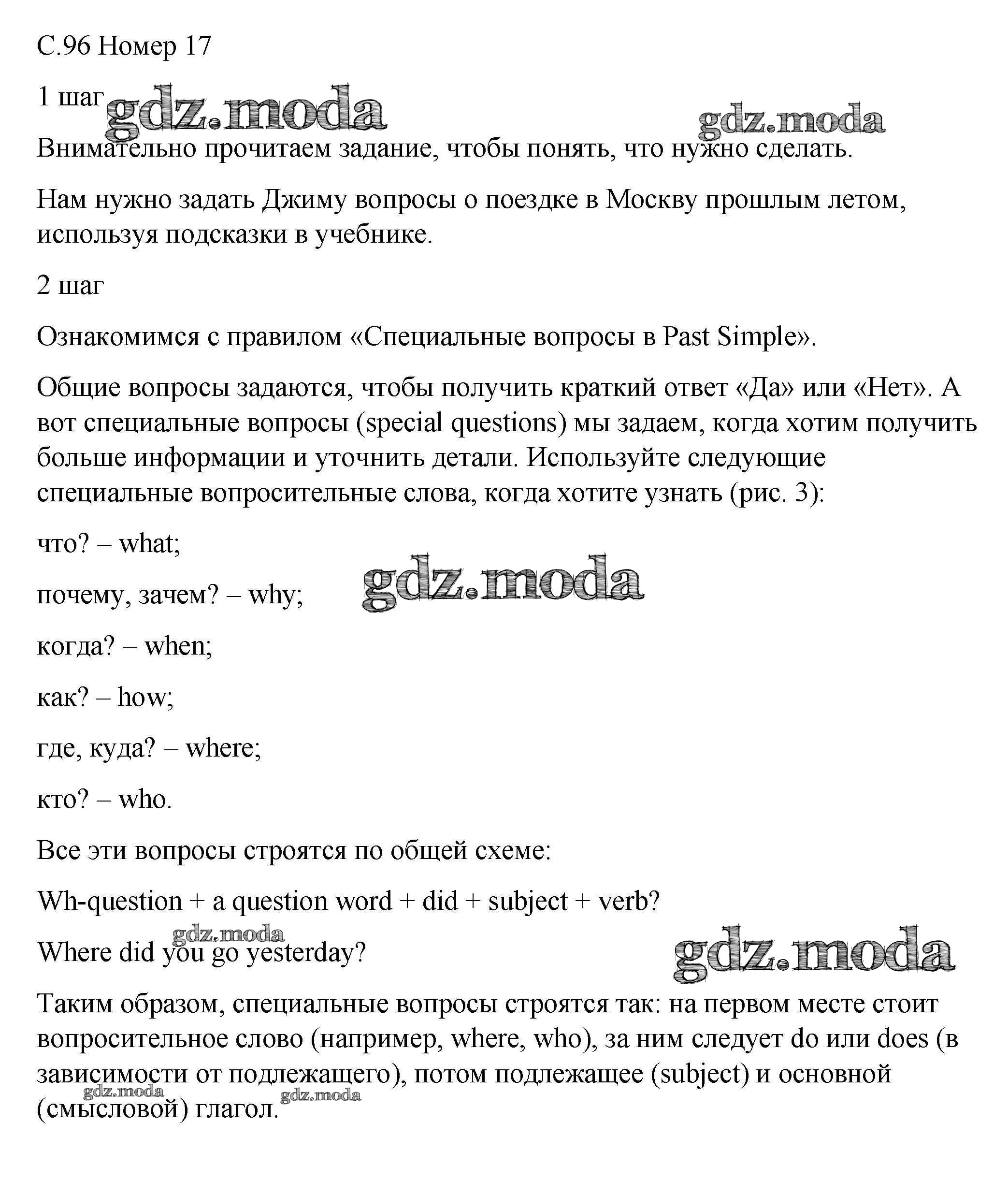 ОТВЕТ на задание № 17 Рабочая тетрадь по Английскому языку 5 класс Афанасьева Rainbow