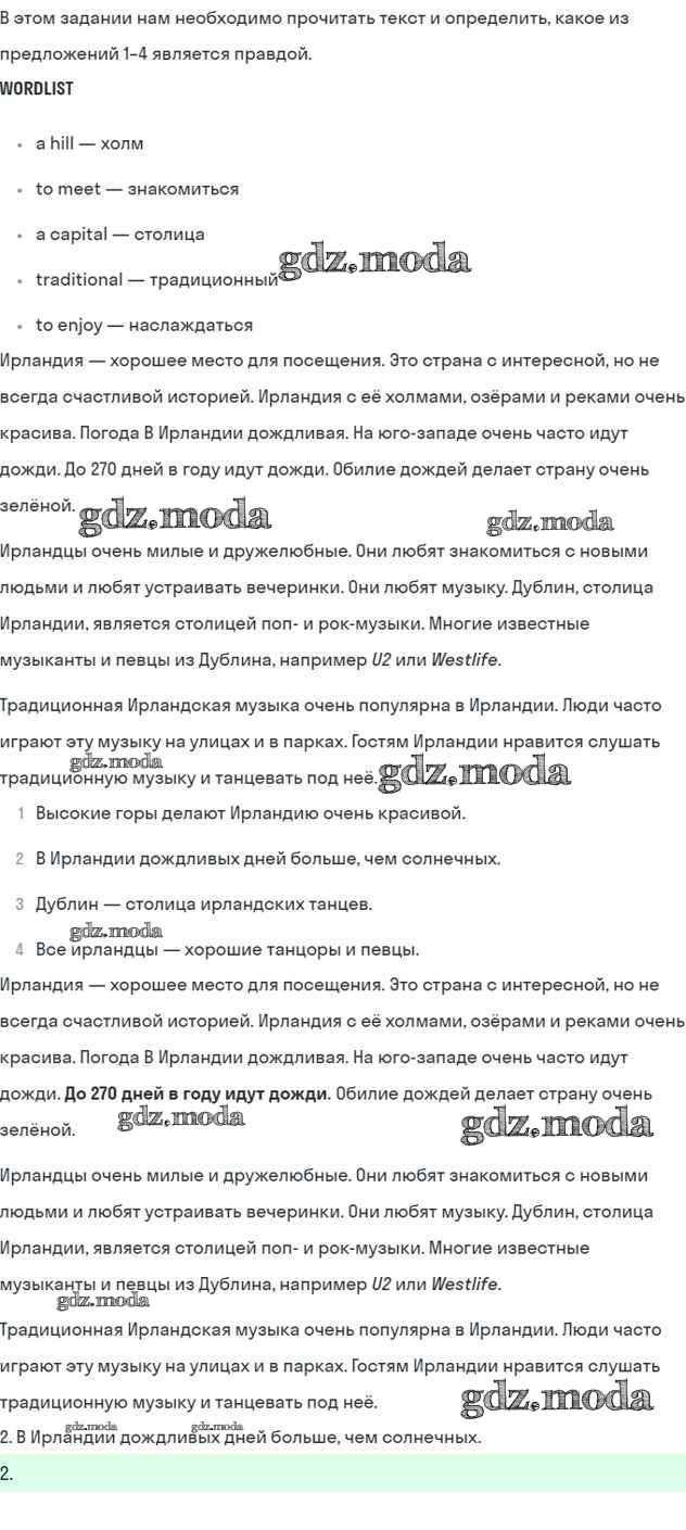 ОТВЕТ на задание № 2 Рабочая тетрадь по Английскому языку 5 класс Афанасьева Rainbow