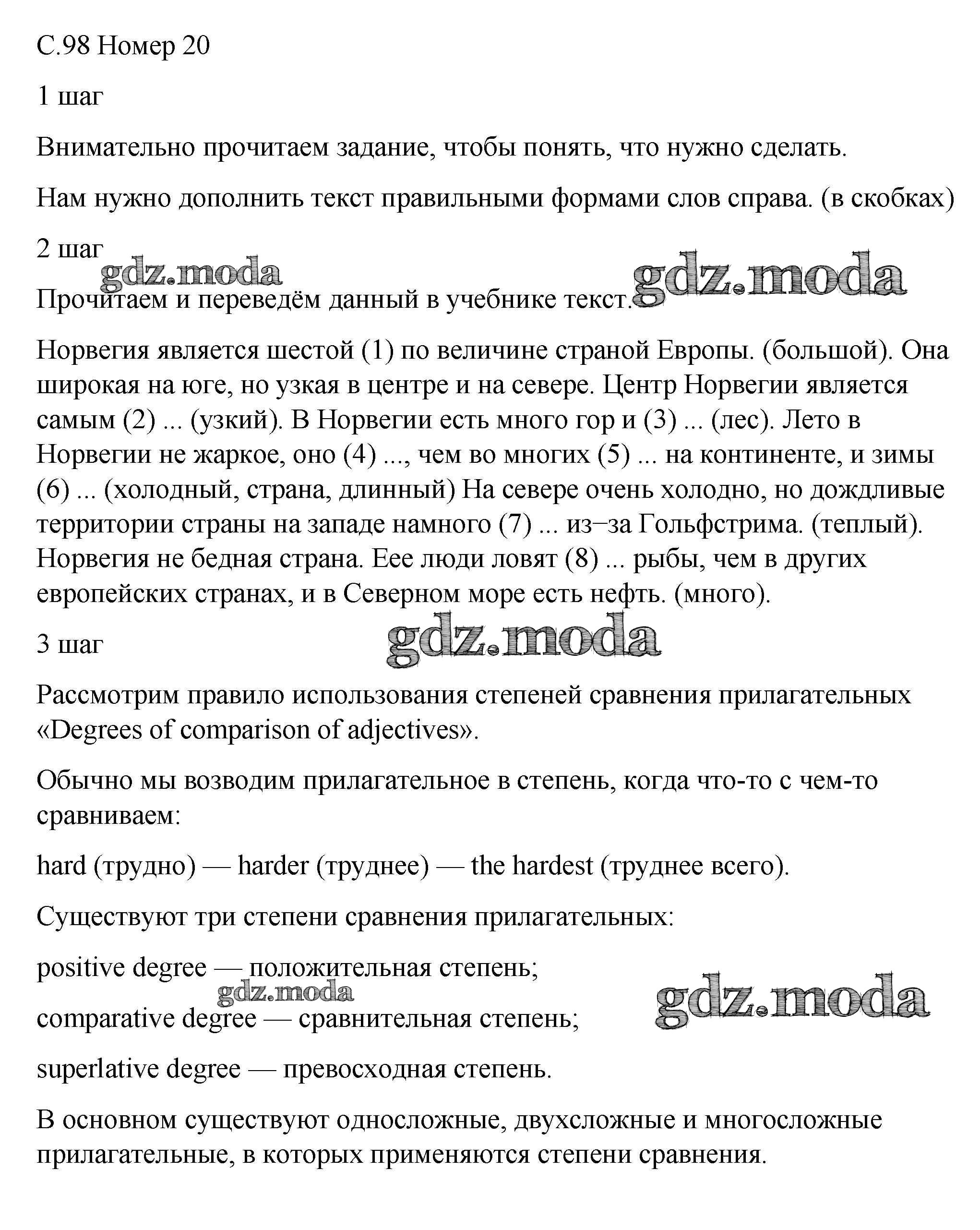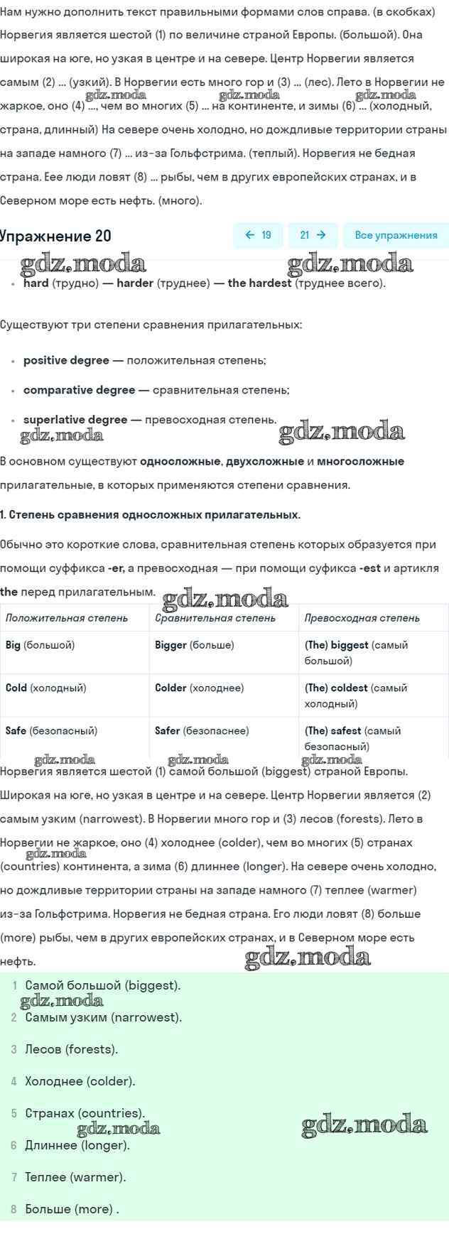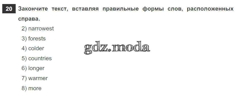 ОТВЕТ на задание № 20 Рабочая тетрадь по Английскому языку 5 класс Афанасьева Rainbow