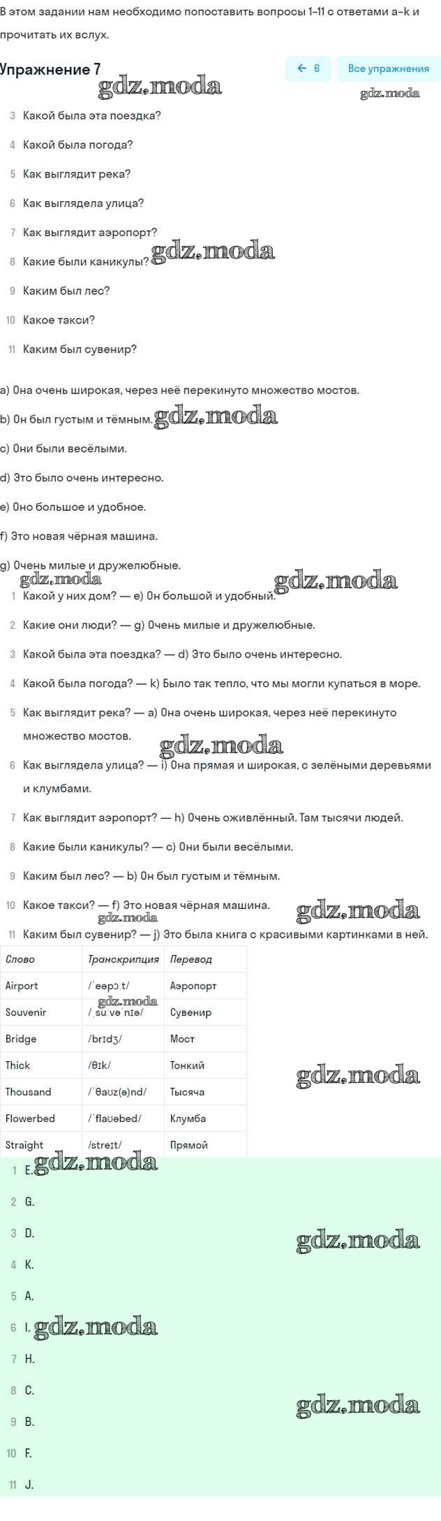 ОТВЕТ на задание № 7 Рабочая тетрадь по Английскому языку 5 класс Афанасьева Rainbow
