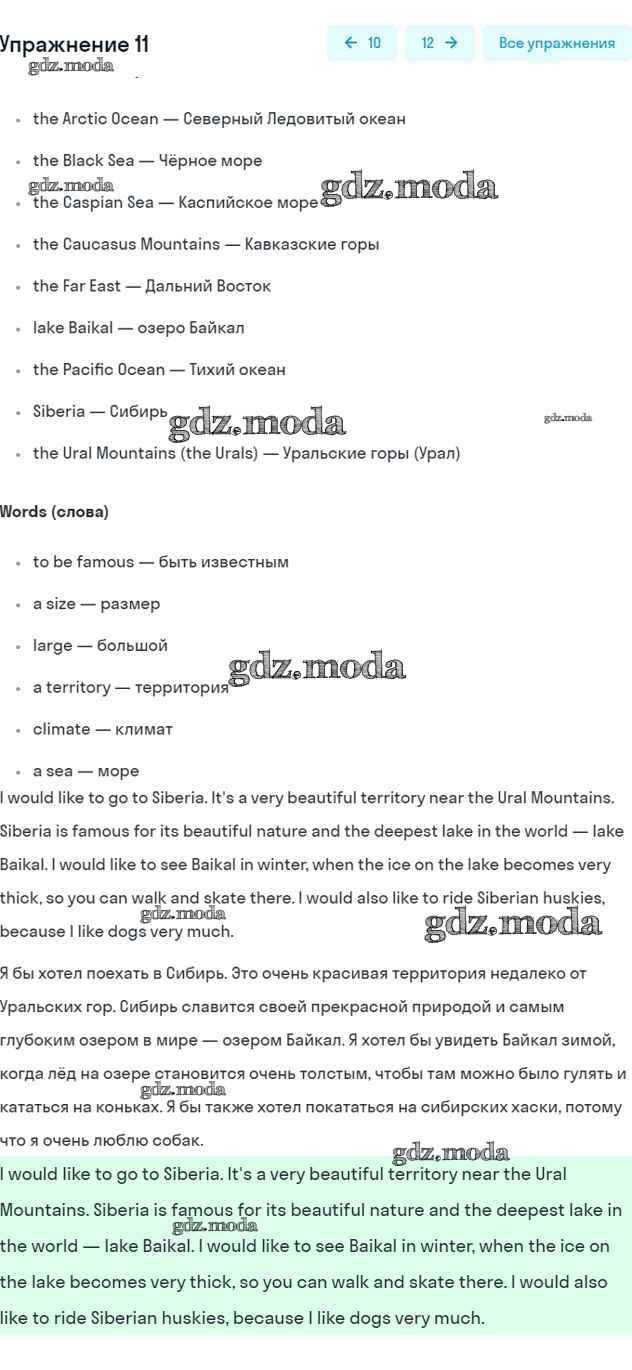 ОТВЕТ на задание № 11 Рабочая тетрадь по Английскому языку 5 класс Афанасьева Rainbow