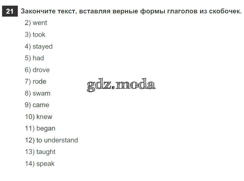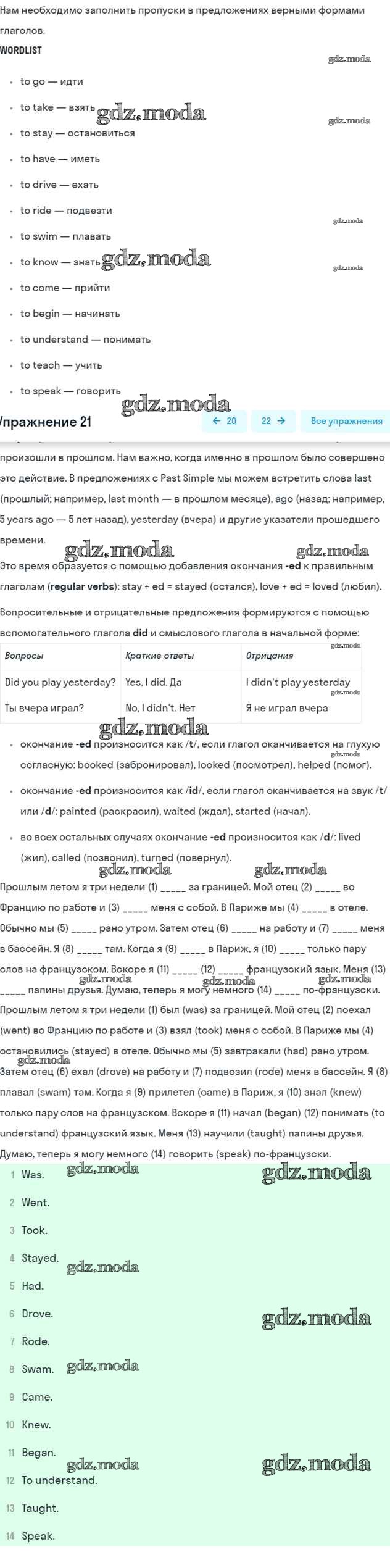 ОТВЕТ на задание № 21 Рабочая тетрадь по Английскому языку 5 класс Афанасьева Rainbow
