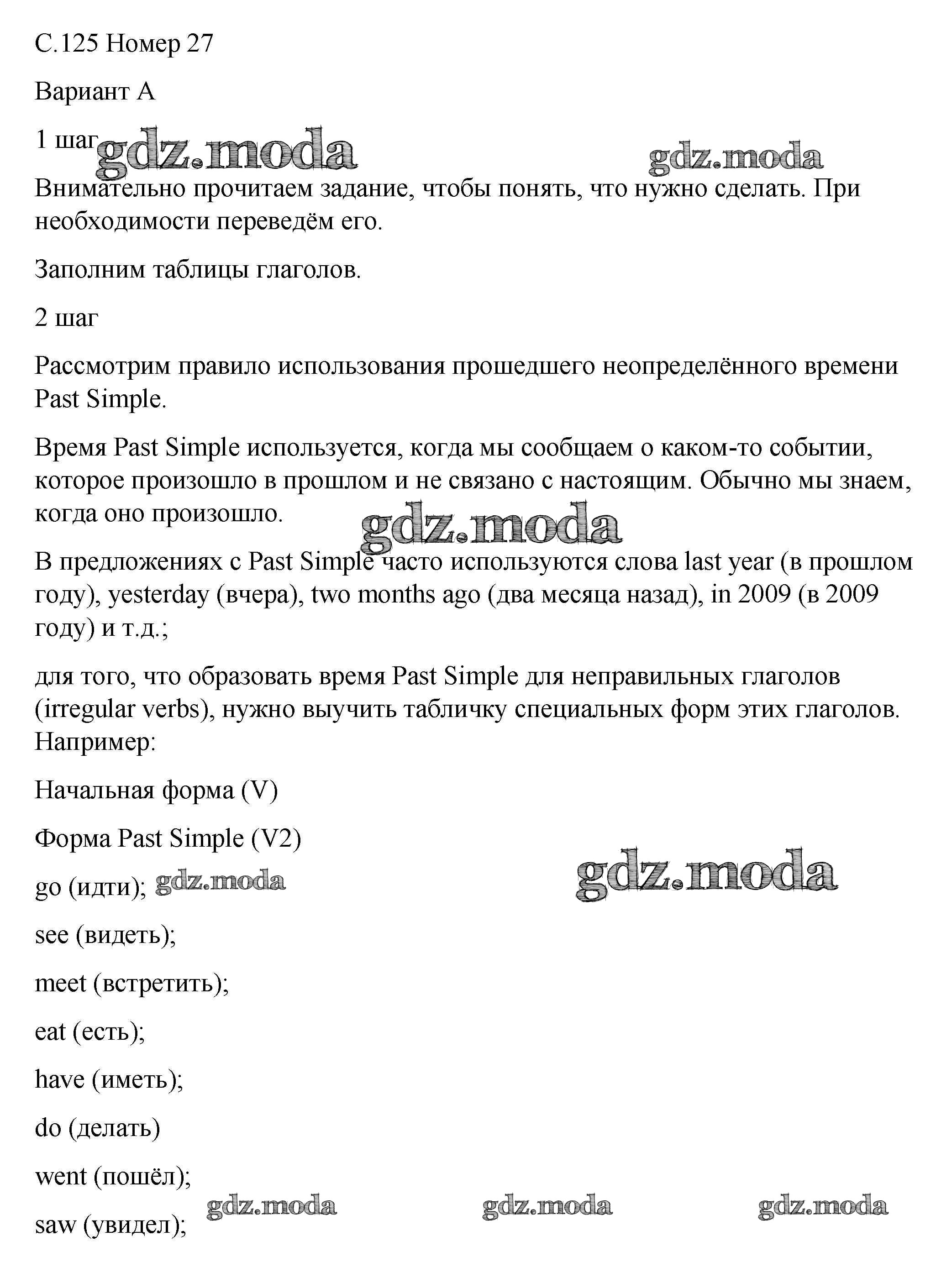 ОТВЕТ на задание № 27 Рабочая тетрадь по Английскому языку 5 класс Афанасьева Rainbow