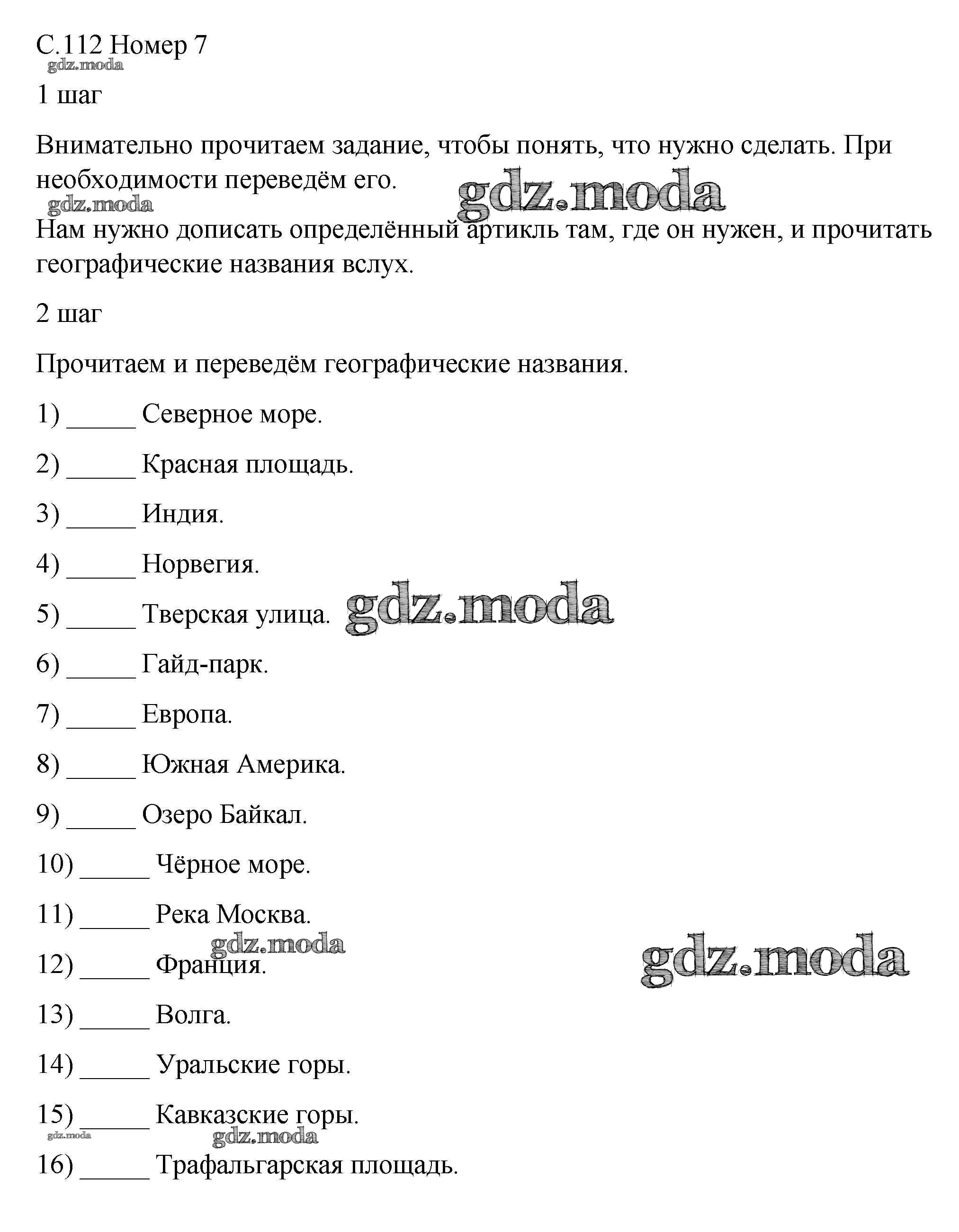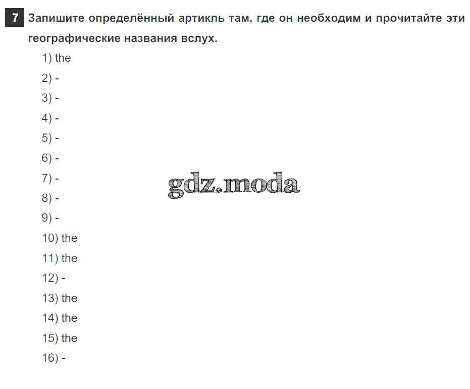 ОТВЕТ на задание № 7 Рабочая тетрадь по Английскому языку 5 класс Афанасьева Rainbow