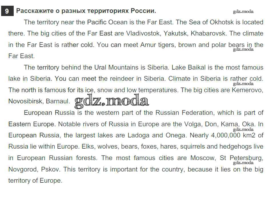 ОТВЕТ на задание № 9 Рабочая тетрадь по Английскому языку 5 класс Афанасьева Rainbow