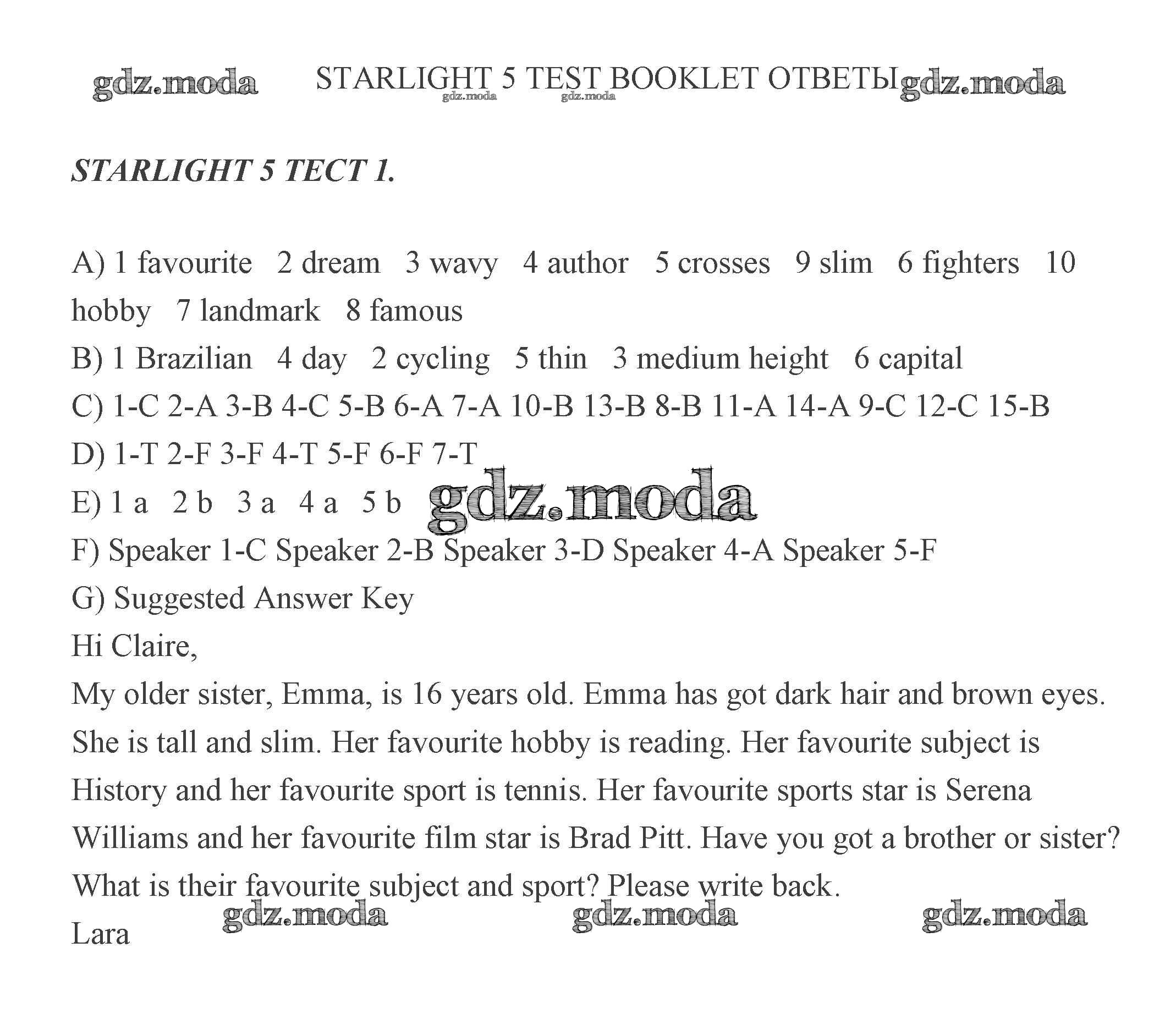ГДЗ решение к заданию № 1 Английский язык 5 класс контрольные задания Баранова Starlight Просвещение 2017 Углубленный уровень бесплатно на гдз.мода!