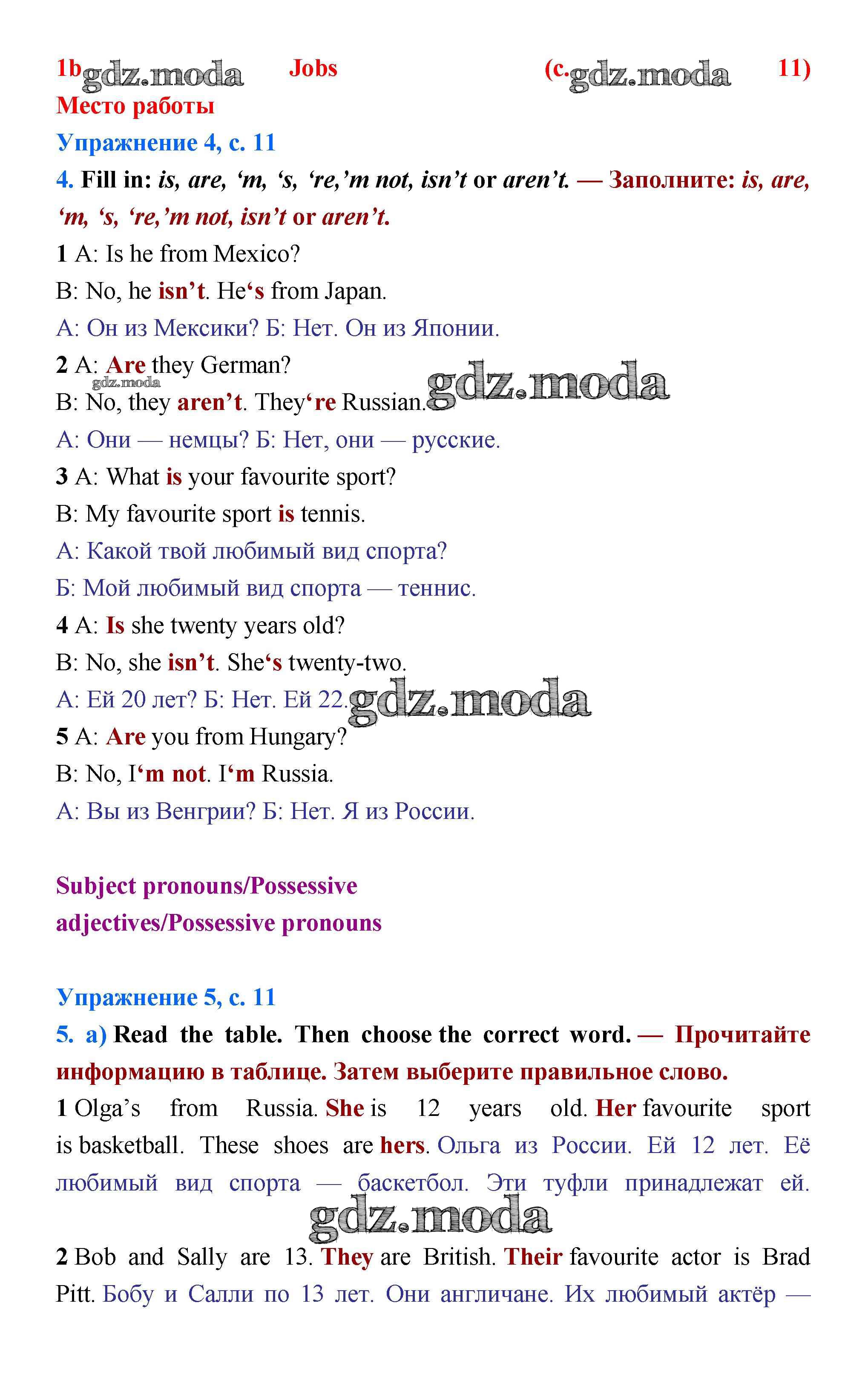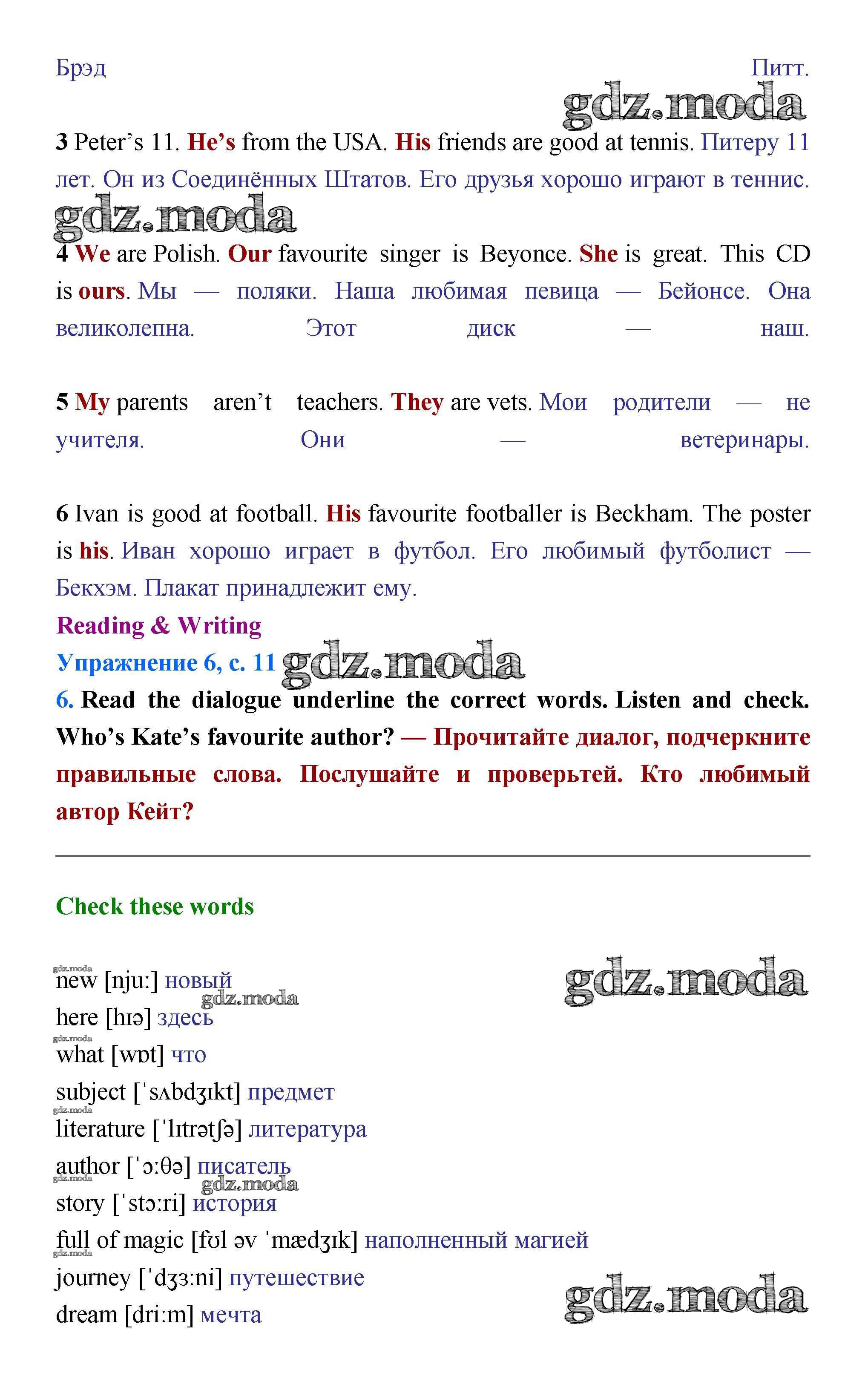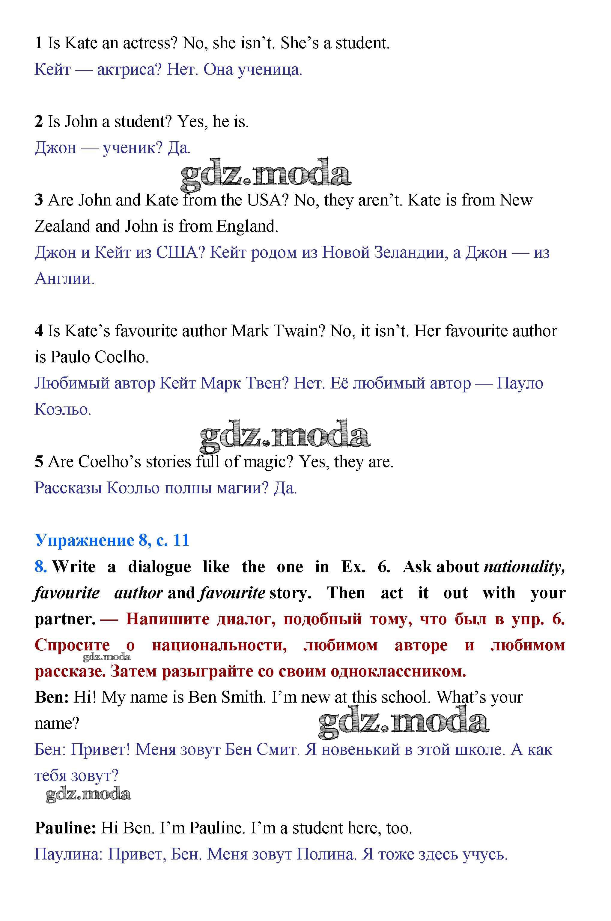 ОТВЕТ на задание № стр.11 Учебник по Английскому языку 5 класс Баранова Starlight Углубленный уровень