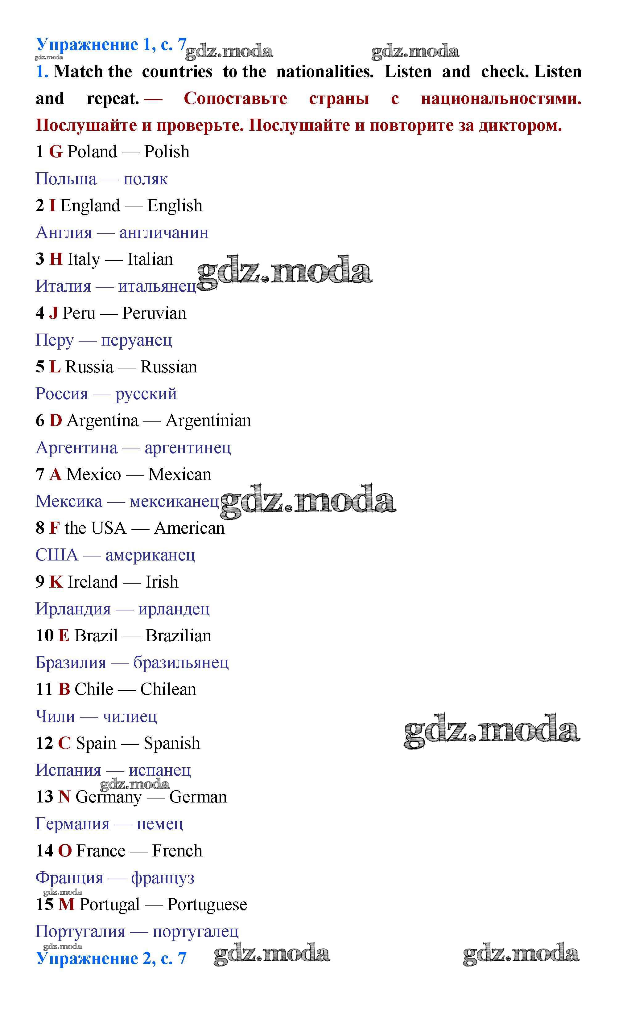 ОТВЕТ на задание № стр.7 Учебник по Английскому языку 5 класс Баранова Starlight Углубленный уровень
