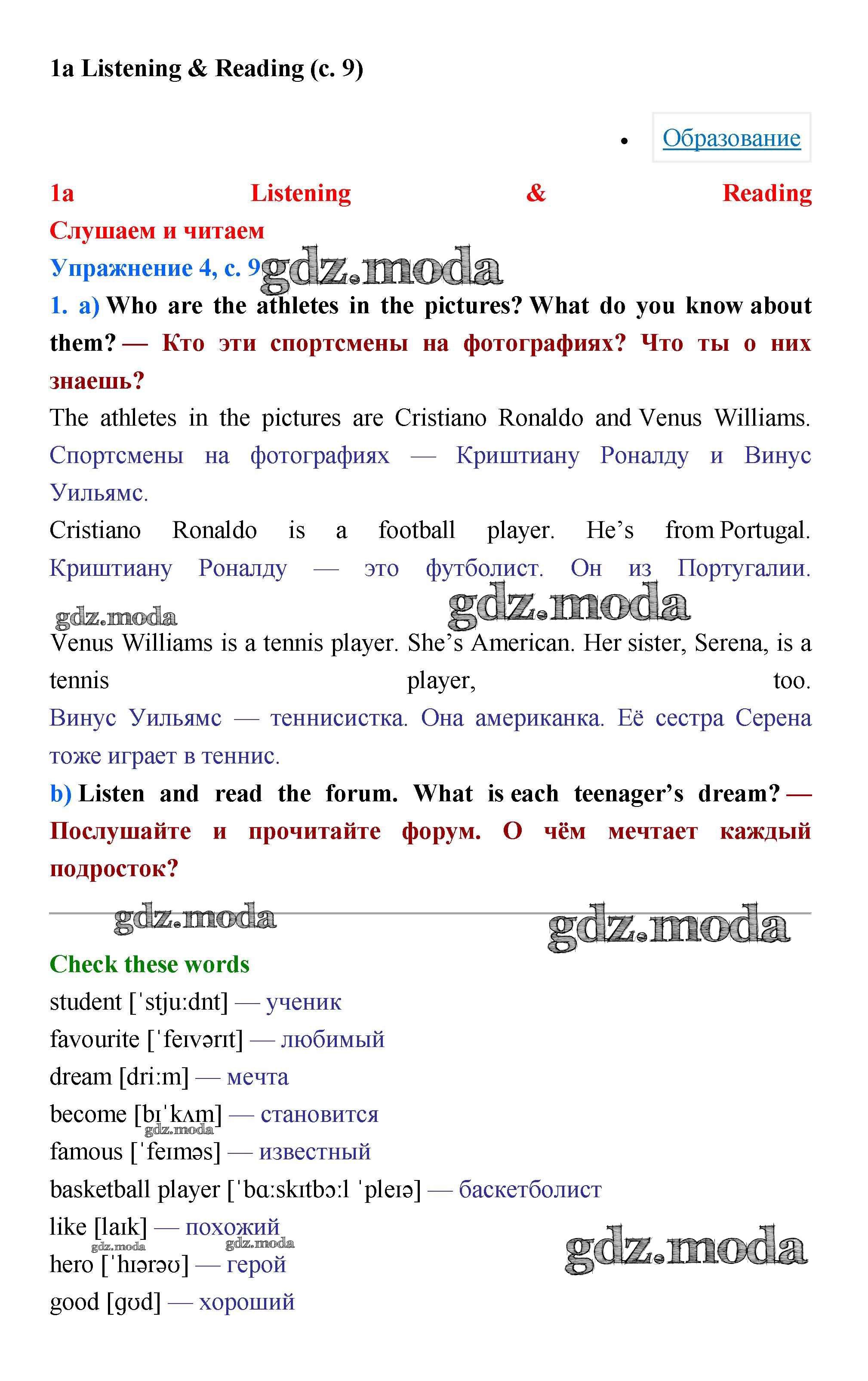 ОТВЕТ на задание № стр.9 Учебник по Английскому языку 5 класс Баранова Starlight Углубленный уровень