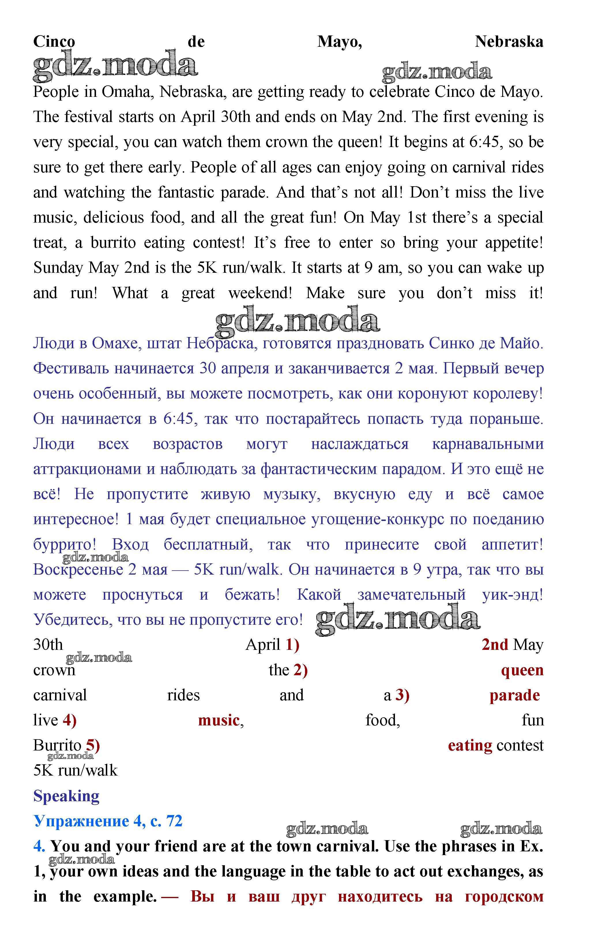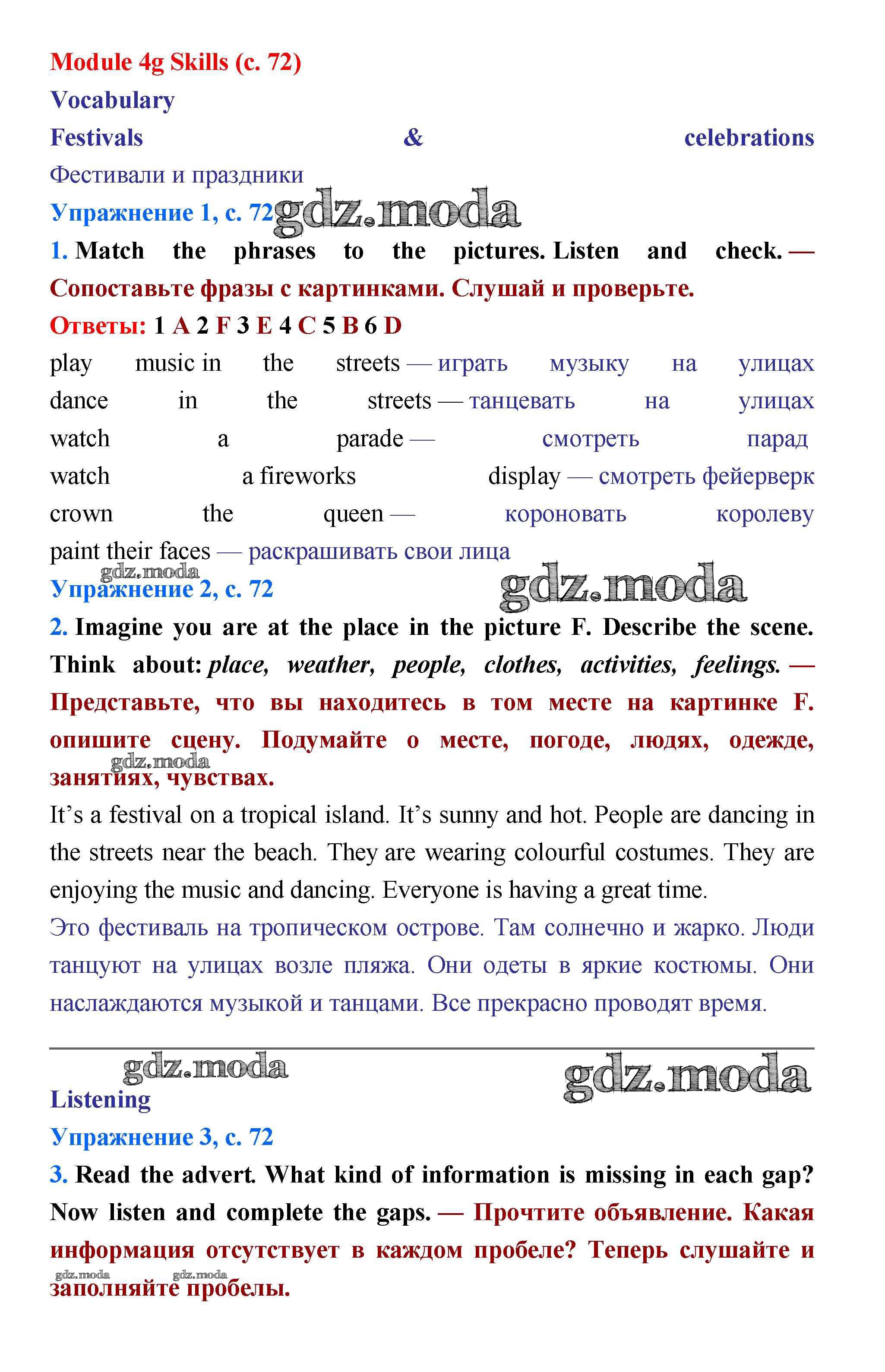 ОТВЕТ на задание № стр.72 Учебник по Английскому языку 5 класс Баранова Starlight Углубленный уровень
