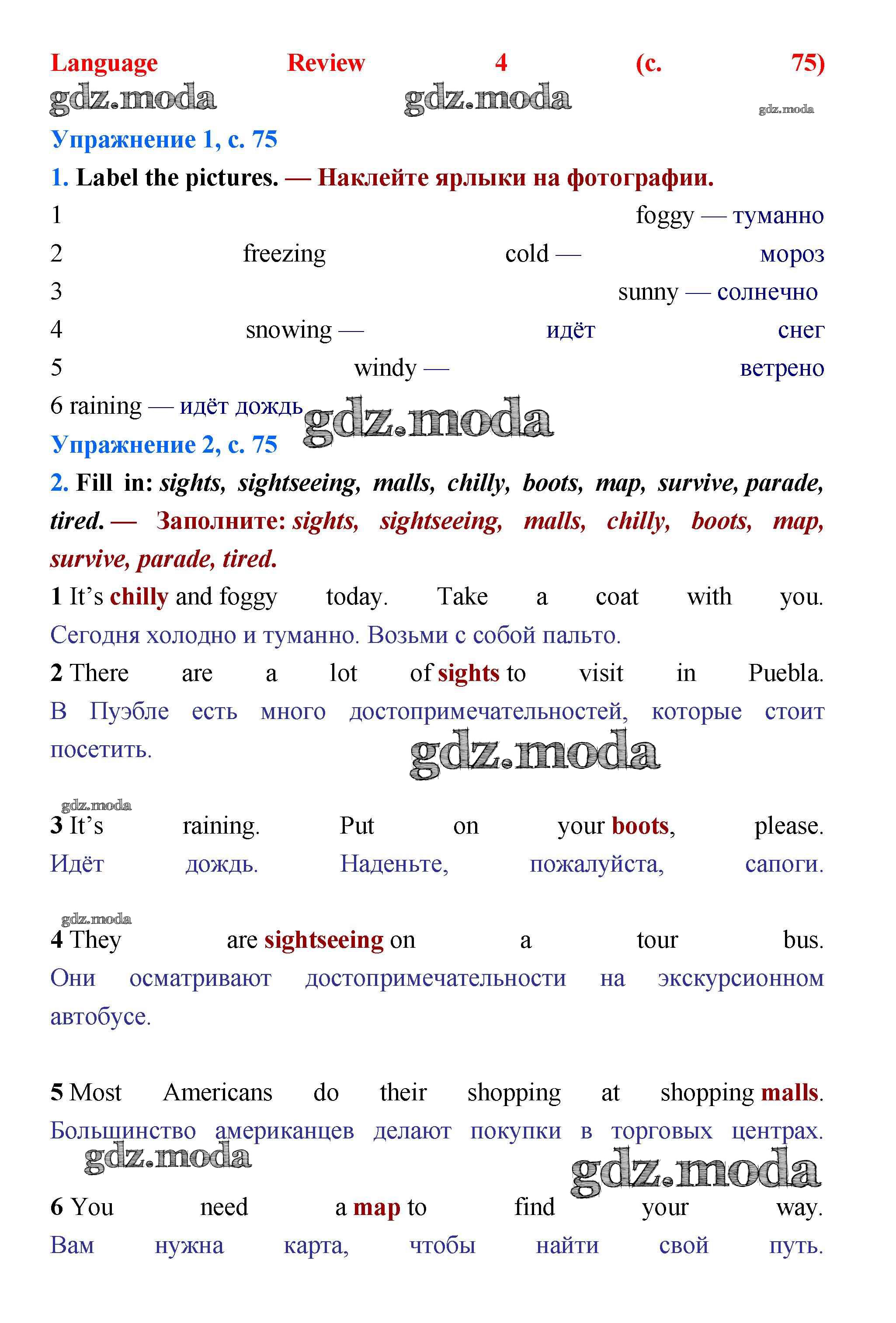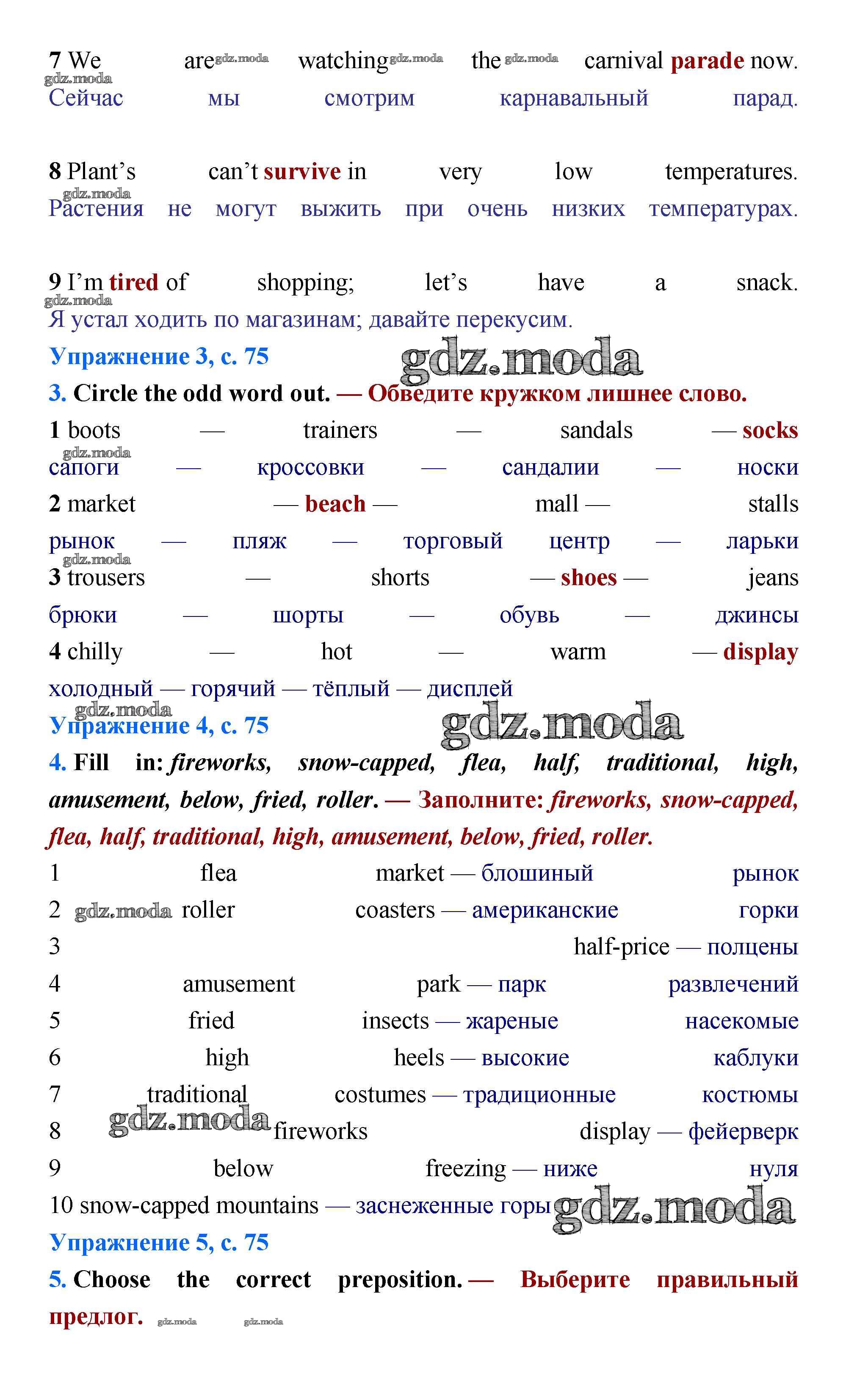 ОТВЕТ на задание № стр.75 Учебник по Английскому языку 5 класс Баранова Starlight Углубленный уровень