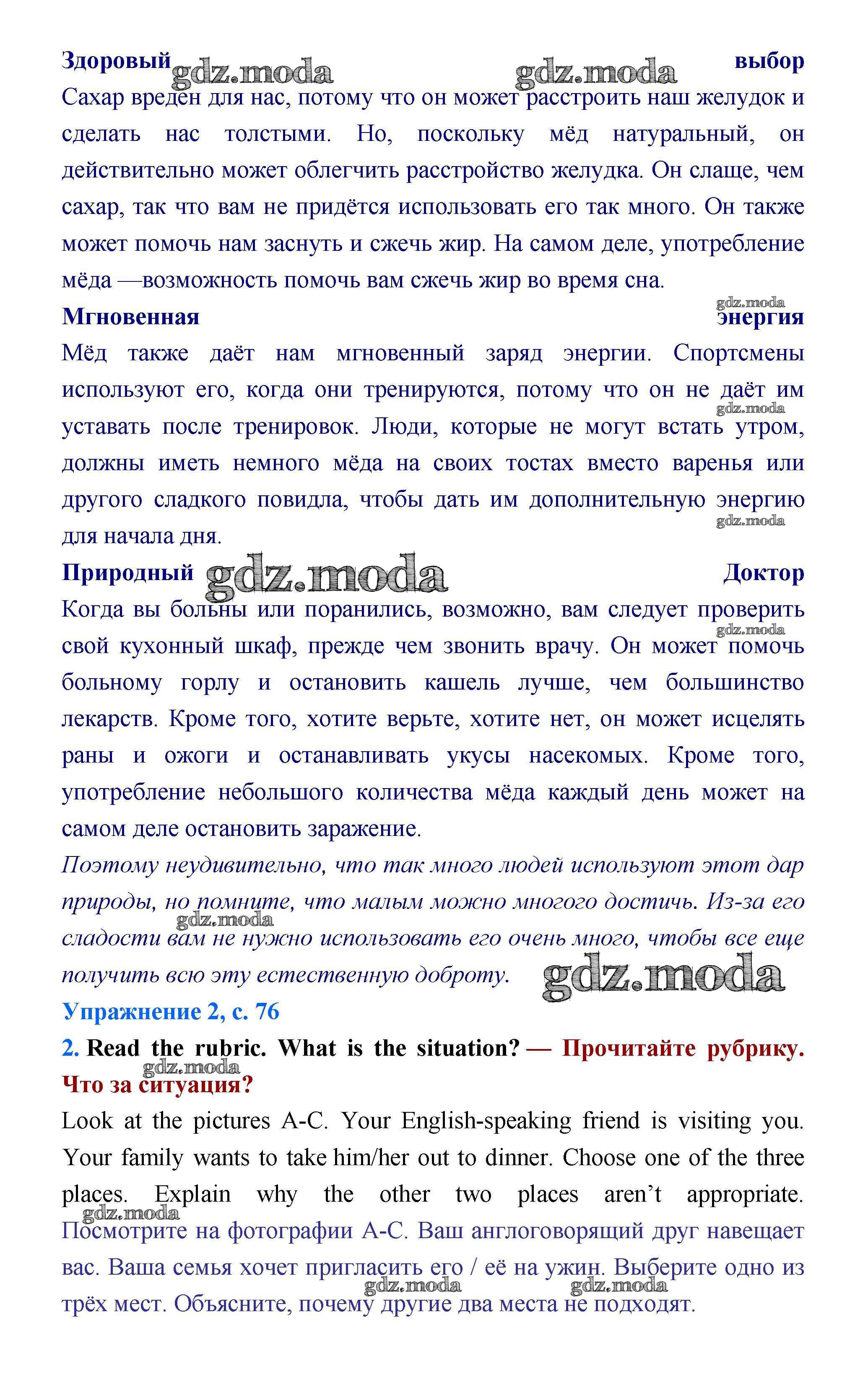 ОТВЕТ на задание № стр.76 Учебник по Английскому языку 5 класс Баранова Starlight Углубленный уровень
