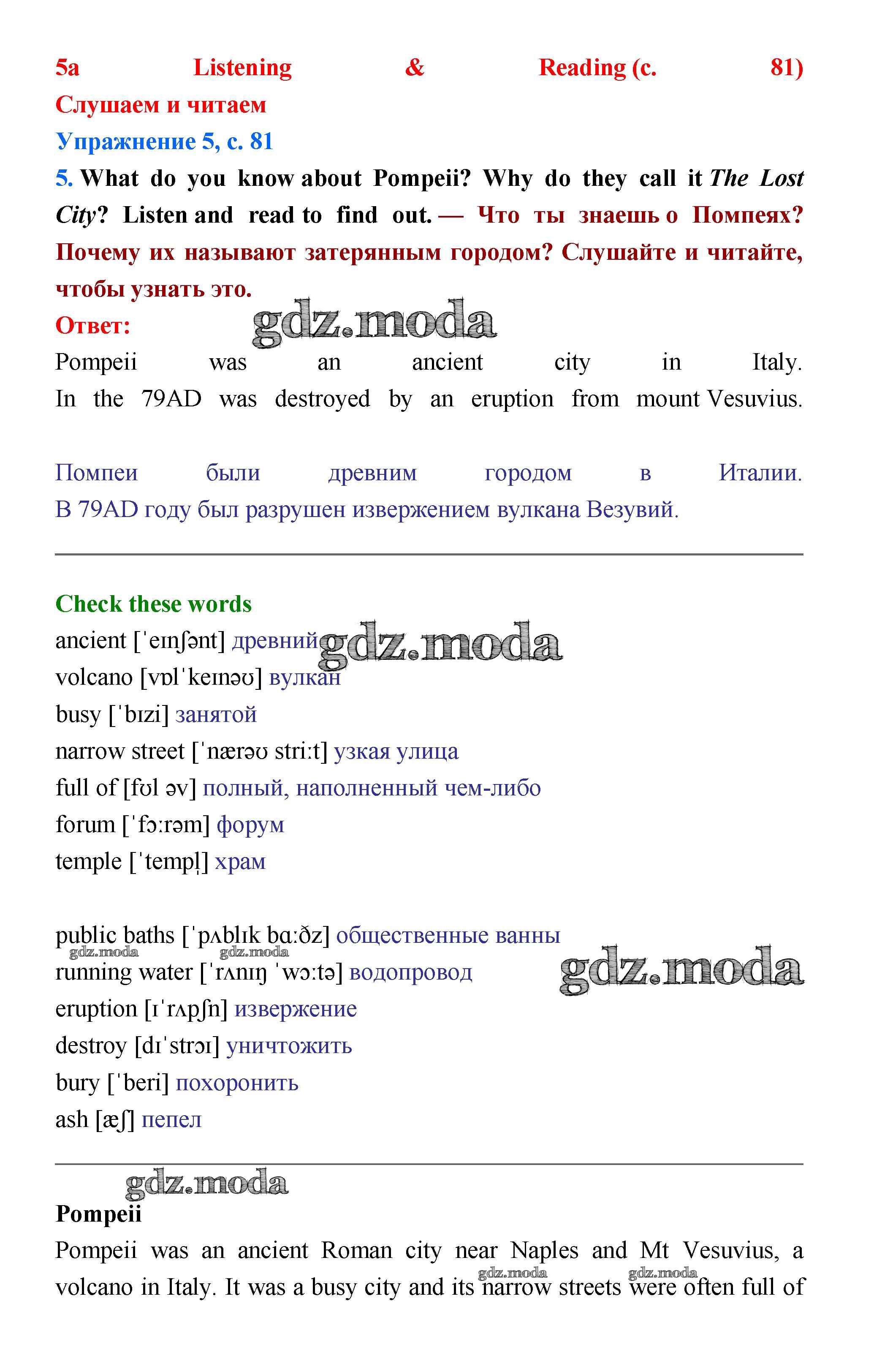 ОТВЕТ на задание № стр.81 Учебник по Английскому языку 5 класс Баранова Starlight Углубленный уровень