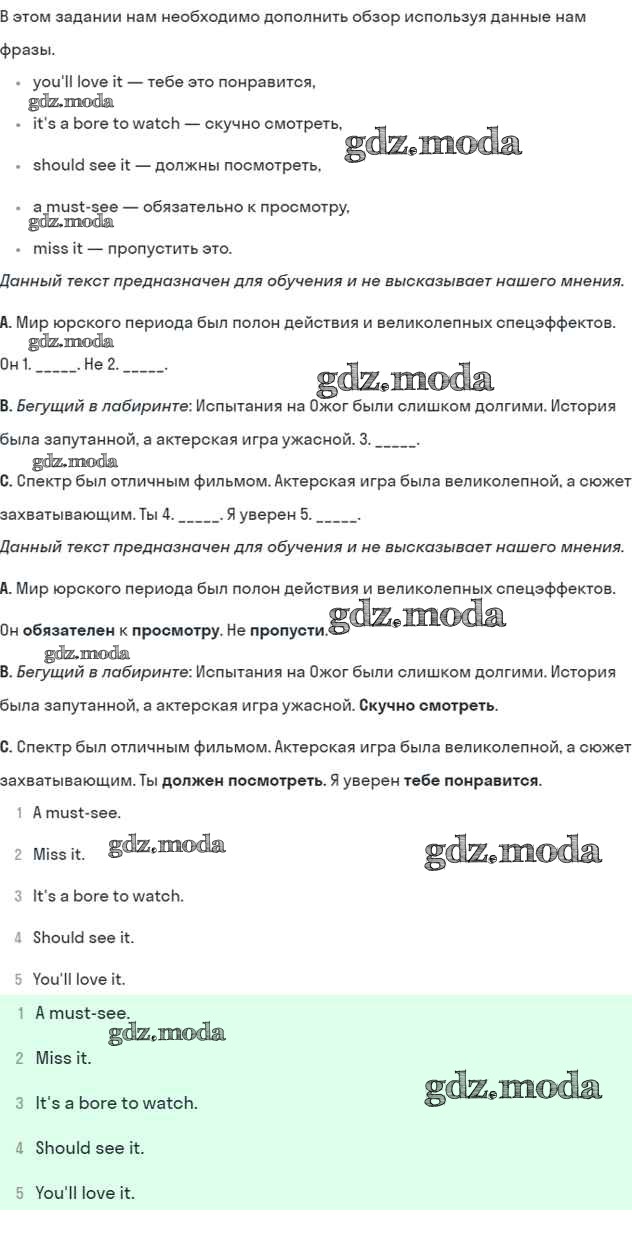 ОТВЕТ на задание № стр.91 Учебник по Английскому языку 5 класс Баранова Starlight Углубленный уровень