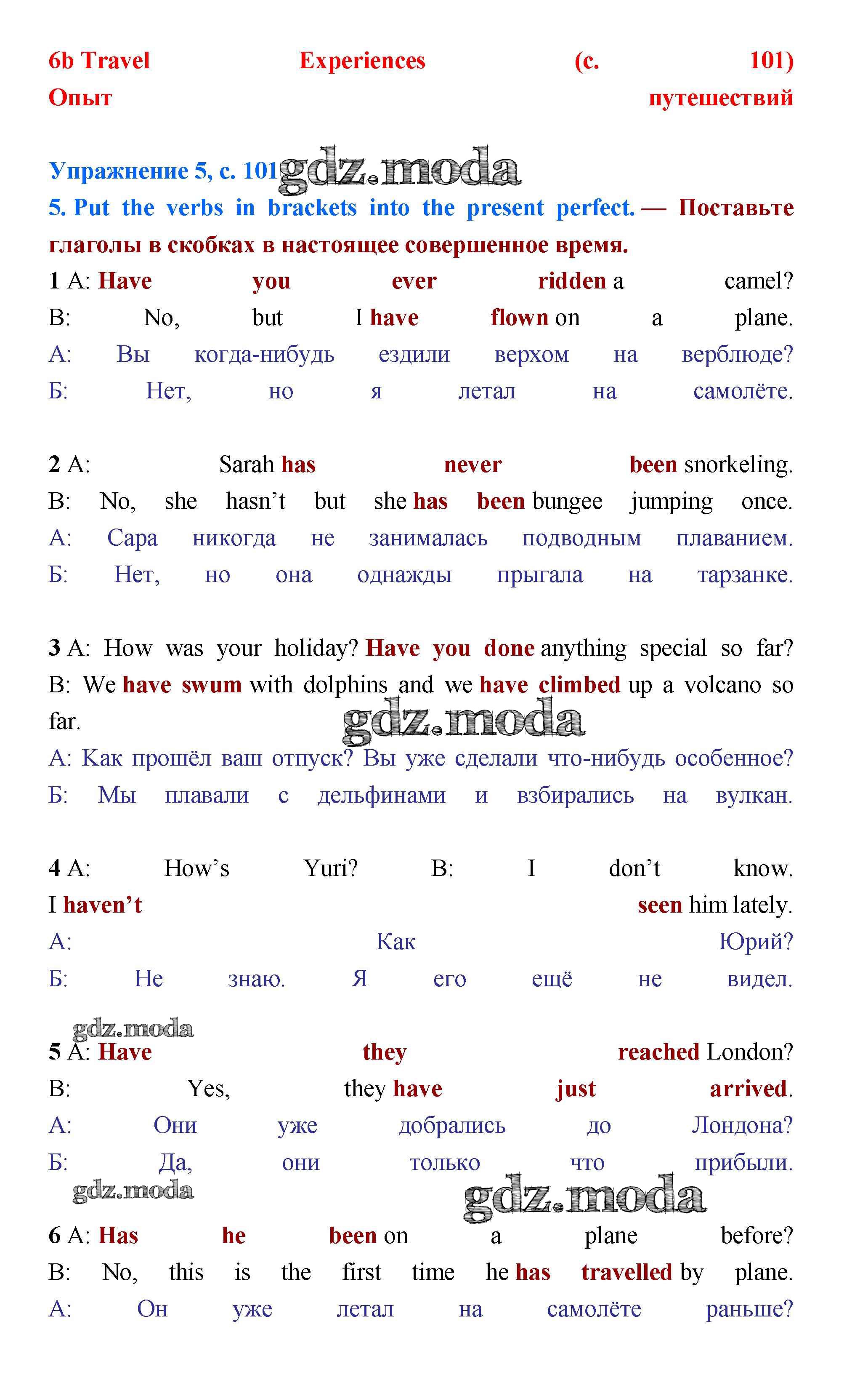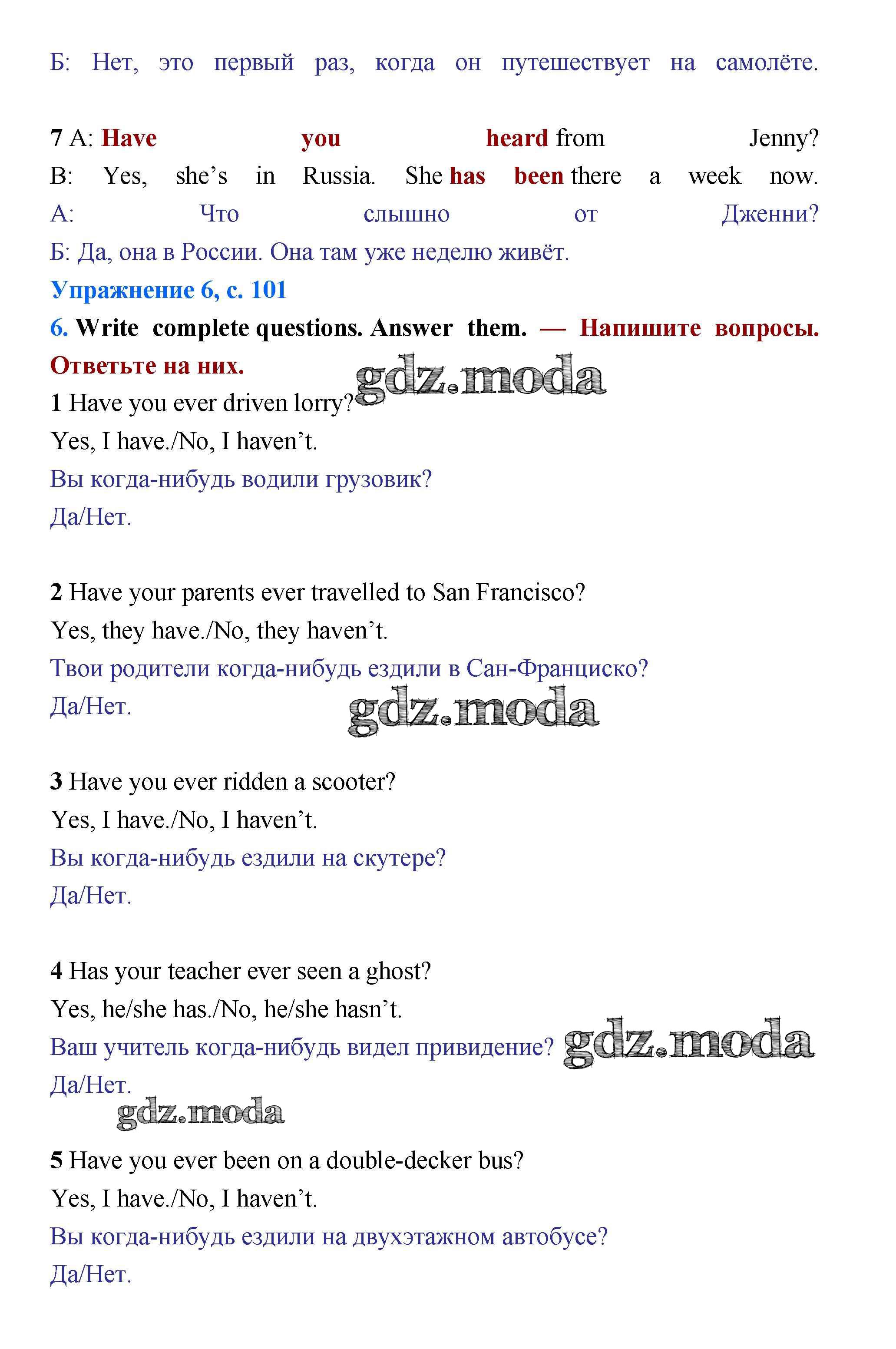 ОТВЕТ на задание № стр.101 Учебник по Английскому языку 5 класс Баранова Starlight Углубленный уровень