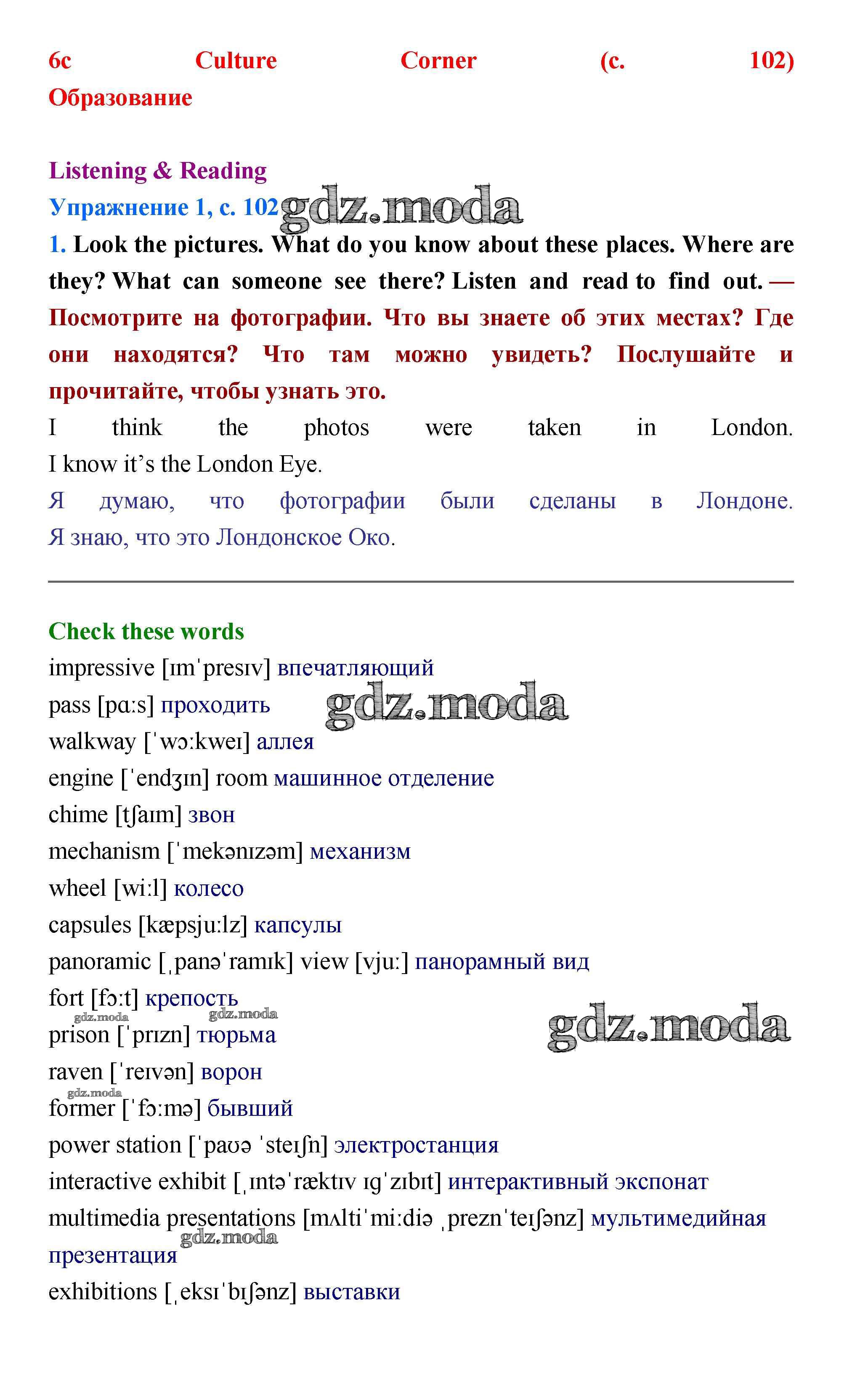 ОТВЕТ на задание № стр.102 Учебник по Английскому языку 5 класс Баранова Starlight Углубленный уровень