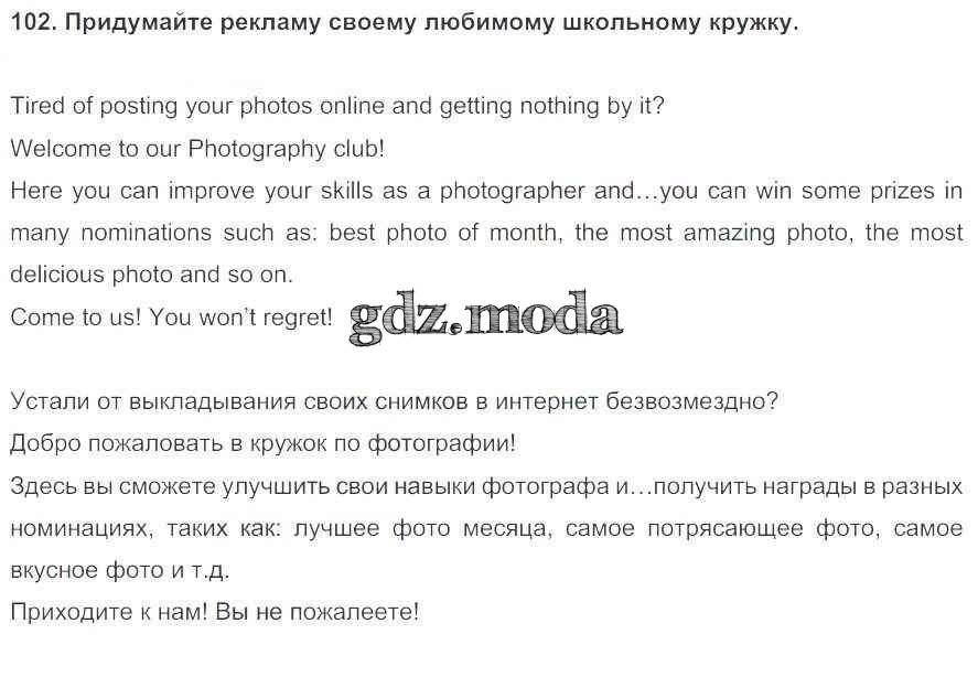 ОТВЕТ на задание № 102 Учебник по Английскому языку 5 класс Биболетова Enjoy English