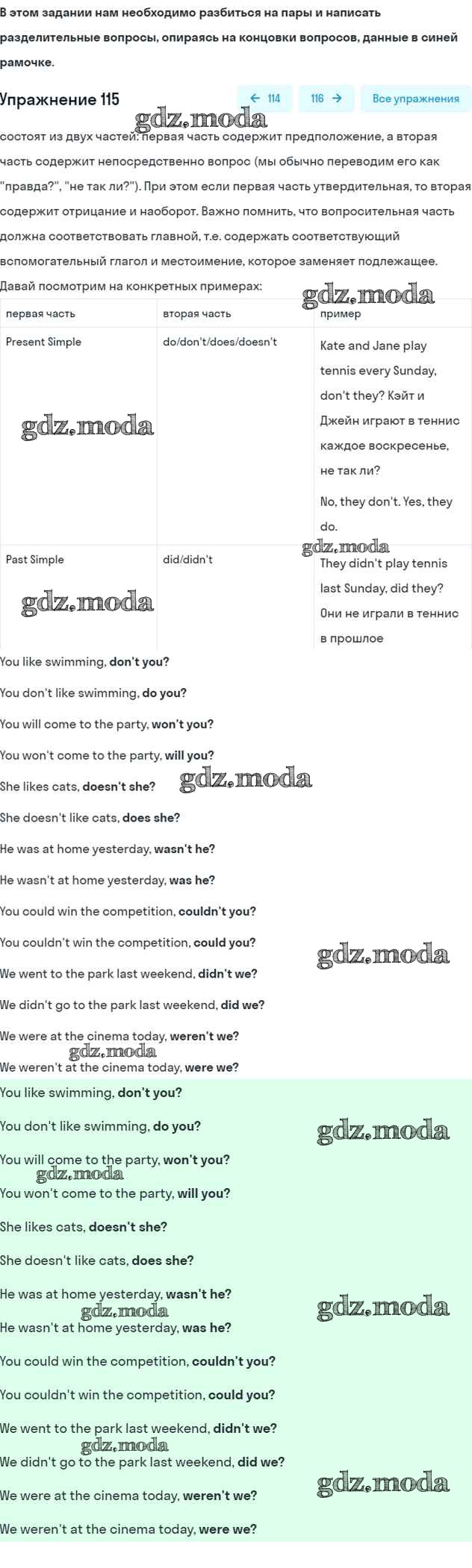 ОТВЕТ на задание № 115 Учебник по Английскому языку 5 класс Биболетова Enjoy English