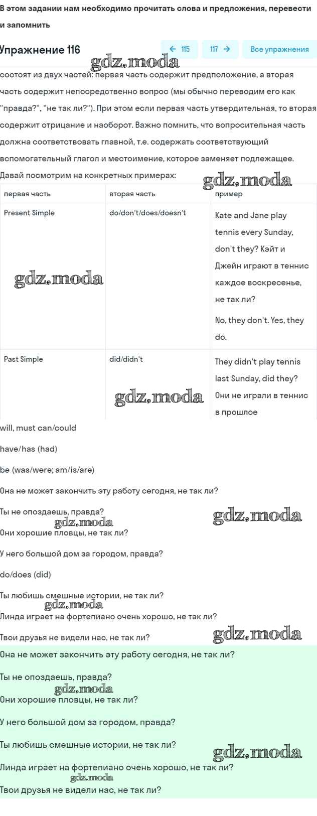 ОТВЕТ на задание № 116 Учебник по Английскому языку 5 класс Биболетова Enjoy English