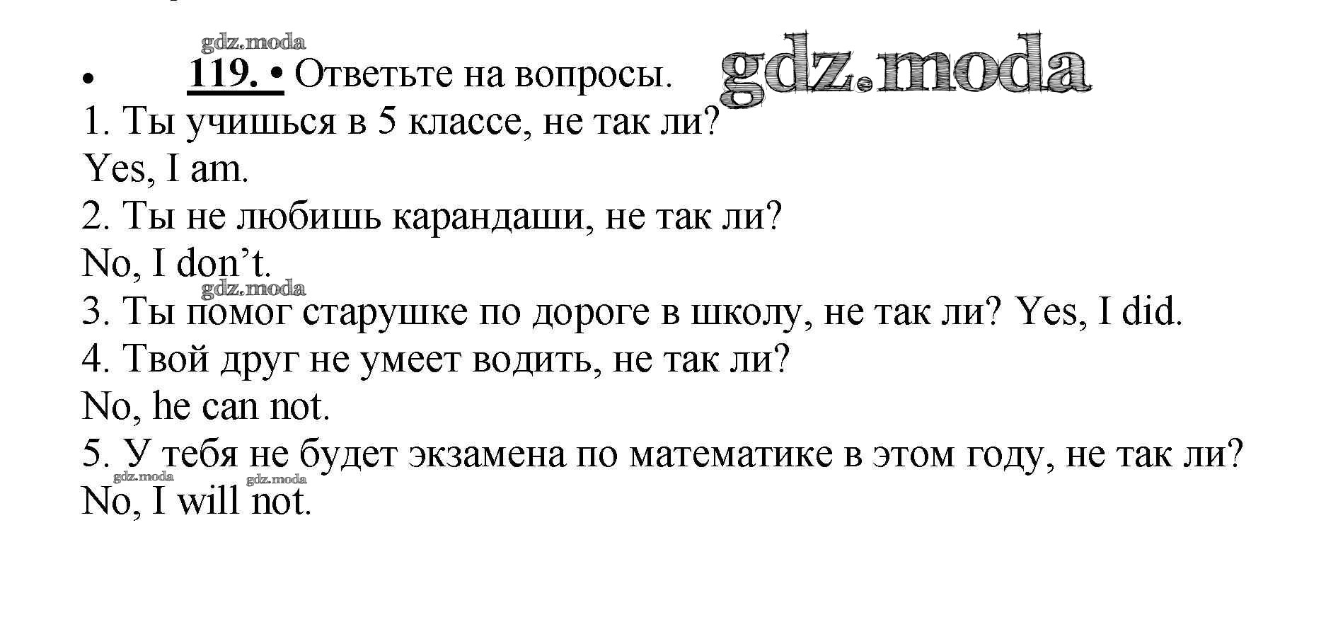 ОТВЕТ на задание № 119 Учебник по Английскому языку 5 класс Биболетова Enjoy English