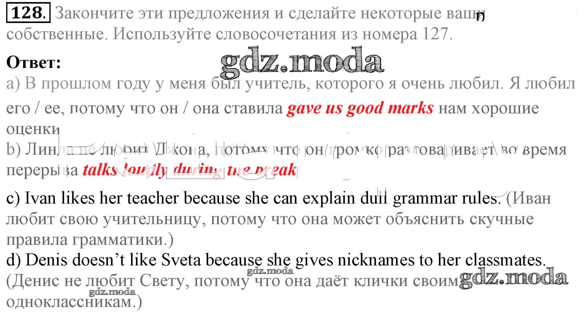 ОТВЕТ на задание № 128 Учебник по Английскому языку 5 класс Биболетова Enjoy English