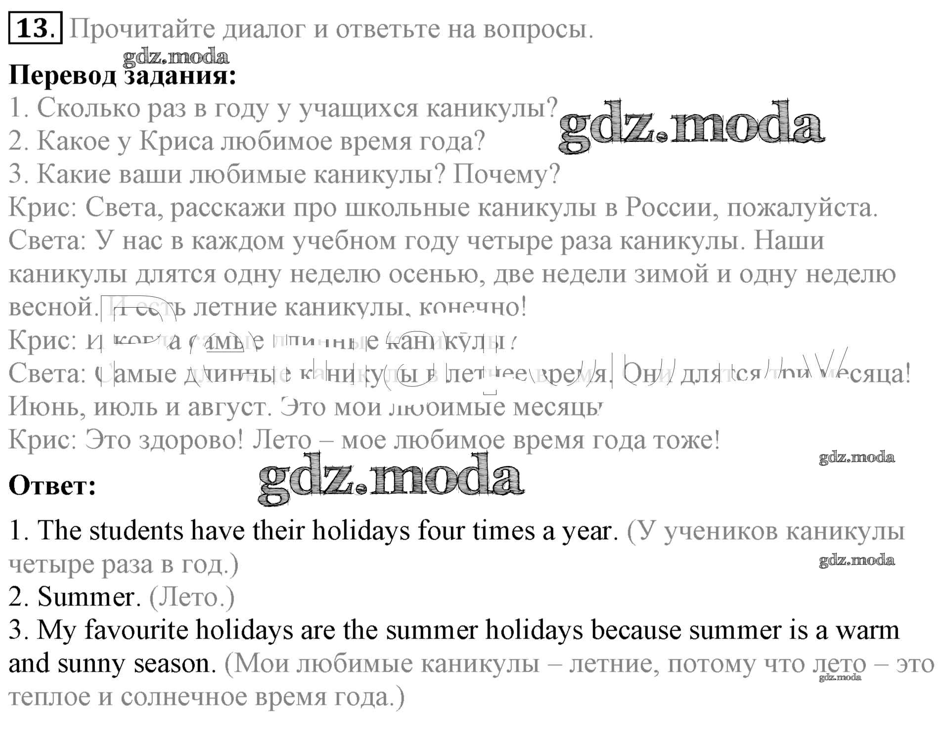 ОТВЕТ на задание № 13 Учебник по Английскому языку 5 класс Биболетова Enjoy English