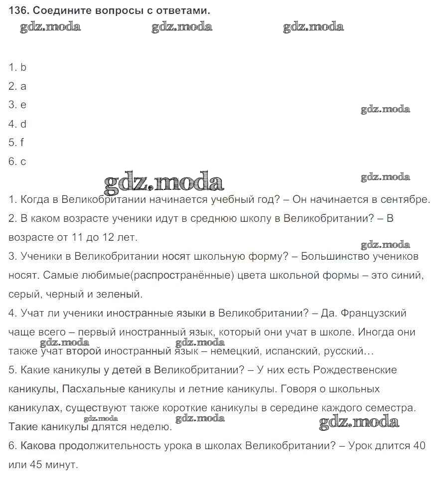 ОТВЕТ на задание № 136 Учебник по Английскому языку 5 класс Биболетова Enjoy English