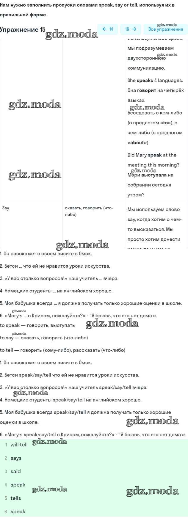 ОТВЕТ на задание № 15 Учебник по Английскому языку 5 класс Биболетова Enjoy English