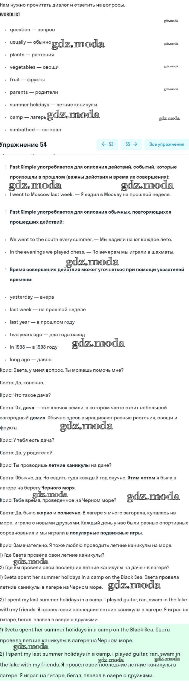 ОТВЕТ на задание № 54 Учебник по Английскому языку 5 класс Биболетова Enjoy English