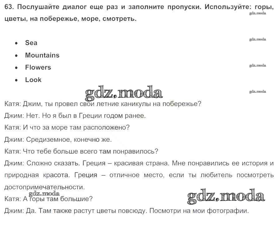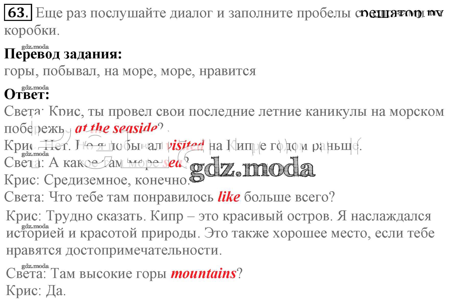 ОТВЕТ на задание № 63 Учебник по Английскому языку 5 класс Биболетова Enjoy English