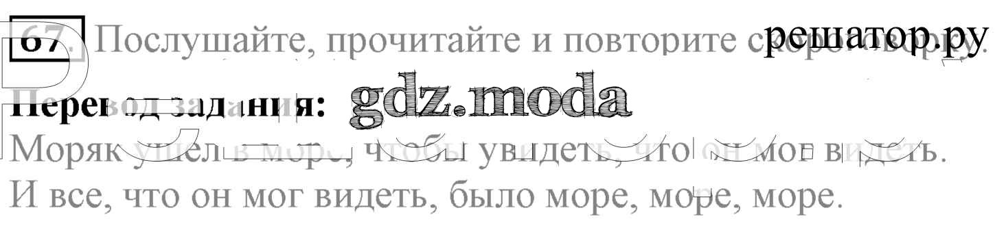 ОТВЕТ на задание № 67 Учебник по Английскому языку 5 класс Биболетова Enjoy English