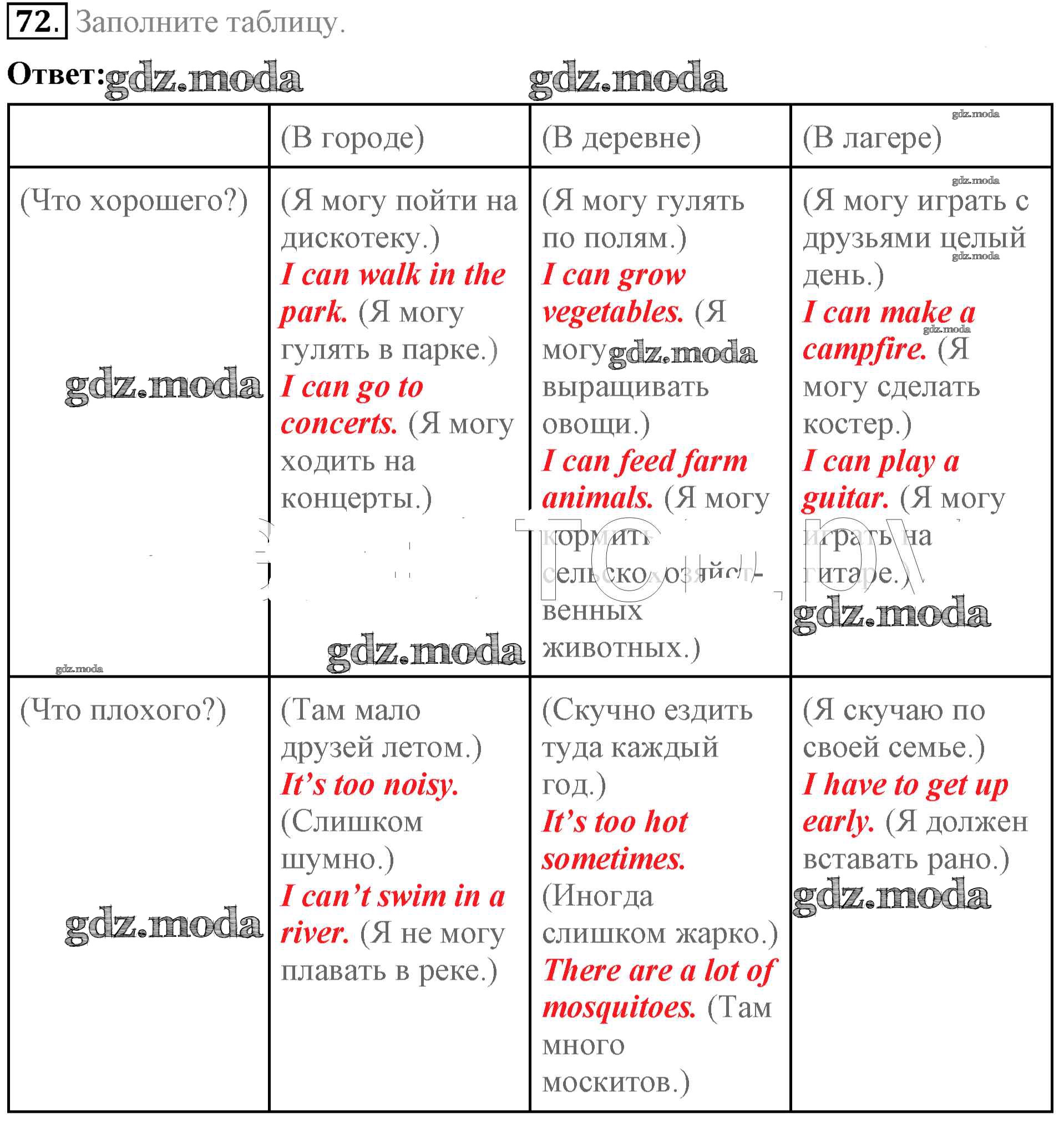 ОТВЕТ на задание № 72 Учебник по Английскому языку 5 класс Биболетова Enjoy English