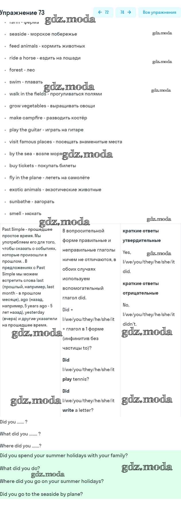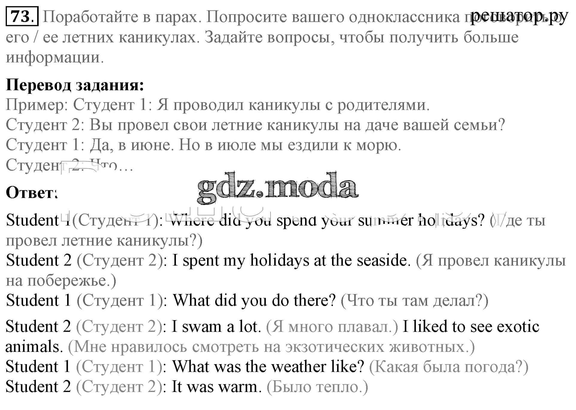 ОТВЕТ на задание № 73 Учебник по Английскому языку 5 класс Биболетова Enjoy English
