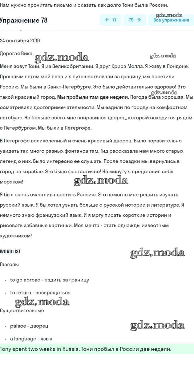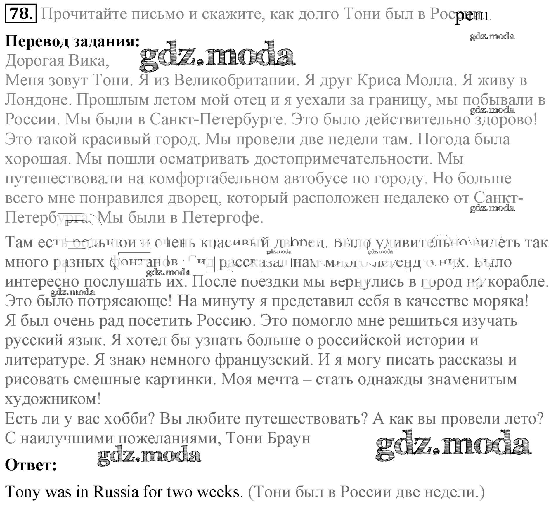 ОТВЕТ на задание № 78 Учебник по Английскому языку 5 класс Биболетова Enjoy English