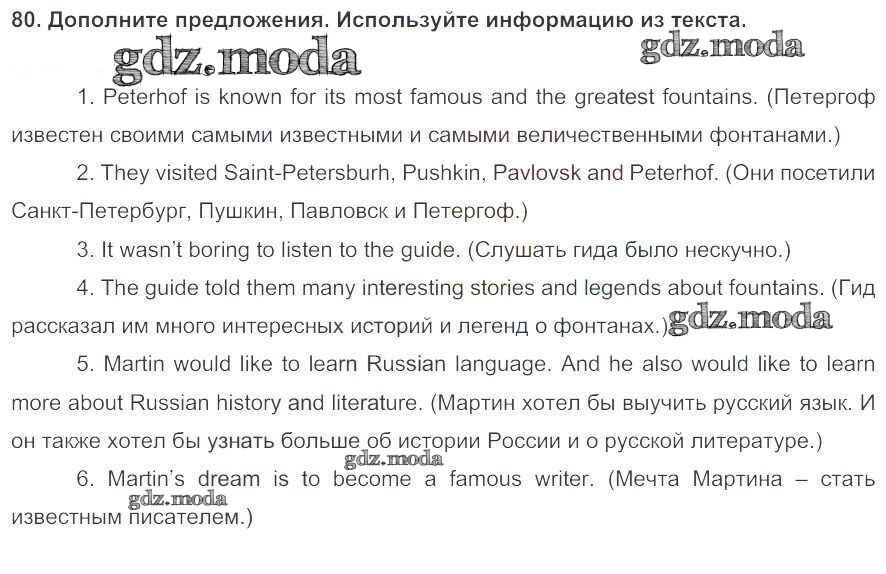 ОТВЕТ на задание № 80 Учебник по Английскому языку 5 класс Биболетова Enjoy English