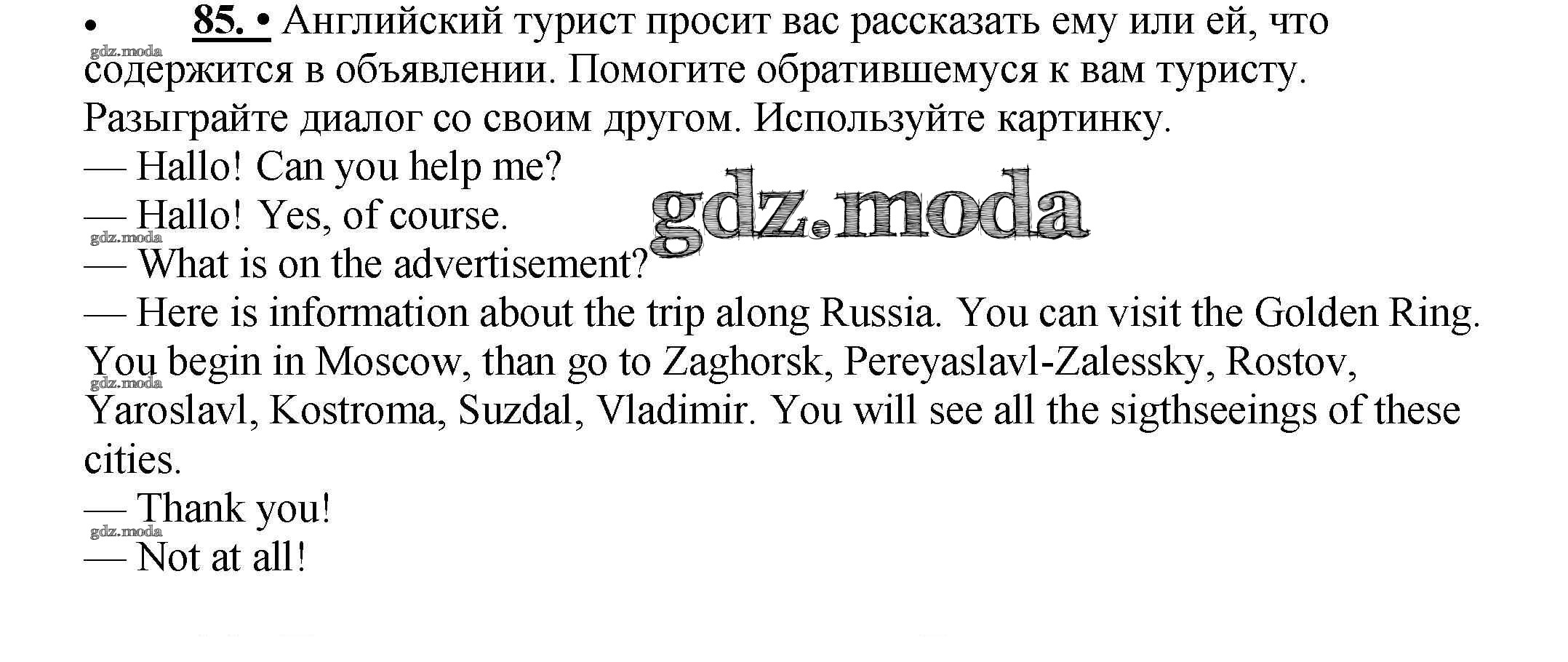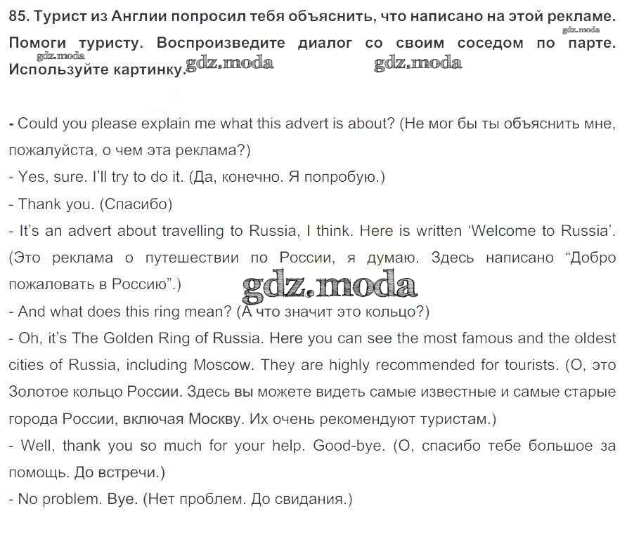 ОТВЕТ на задание № 85 Учебник по Английскому языку 5 класс Биболетова Enjoy English