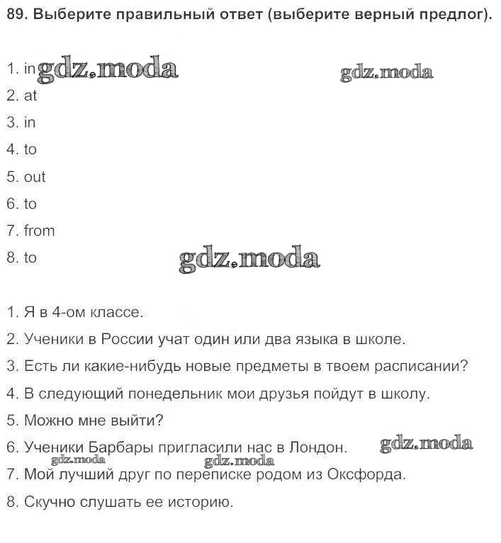 ОТВЕТ на задание № 89 Учебник по Английскому языку 5 класс Биболетова Enjoy English