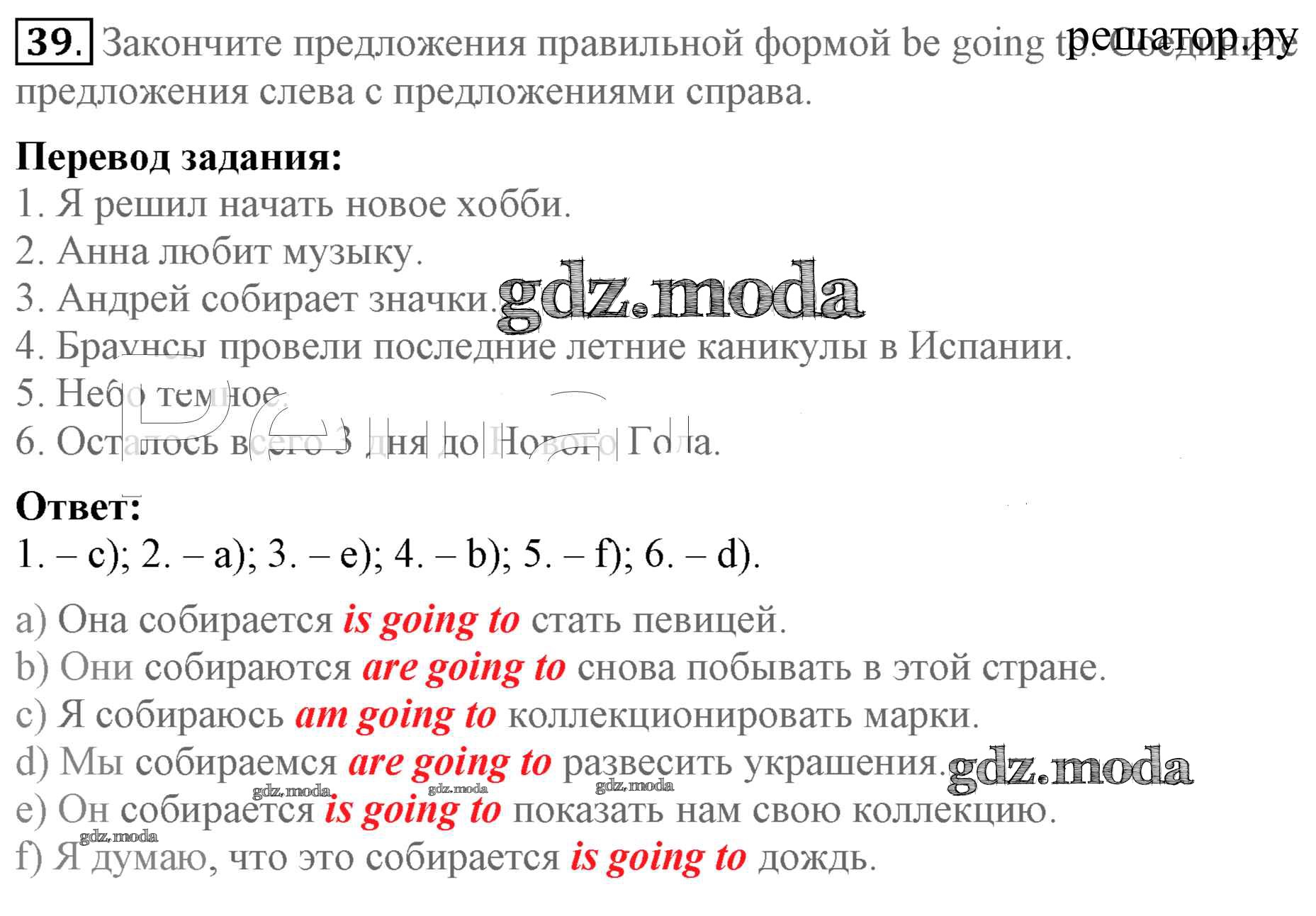 ОТВЕТ на задание № 39 Учебник по Английскому языку 5 класс Биболетова Enjoy English