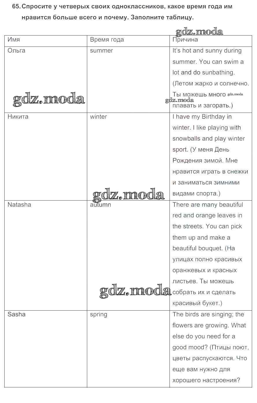 ОТВЕТ на задание № 65 Учебник по Английскому языку 5 класс Биболетова Enjoy English