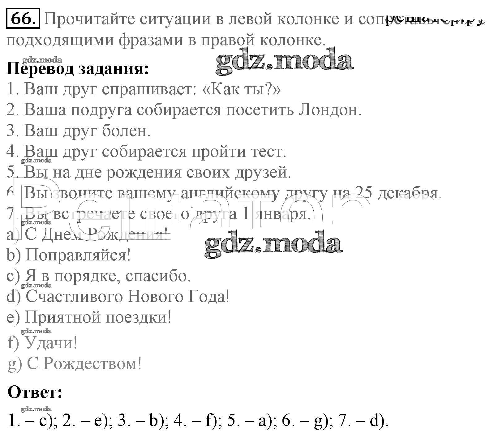 ОТВЕТ на задание № 66 Учебник по Английскому языку 5 класс Биболетова Enjoy English