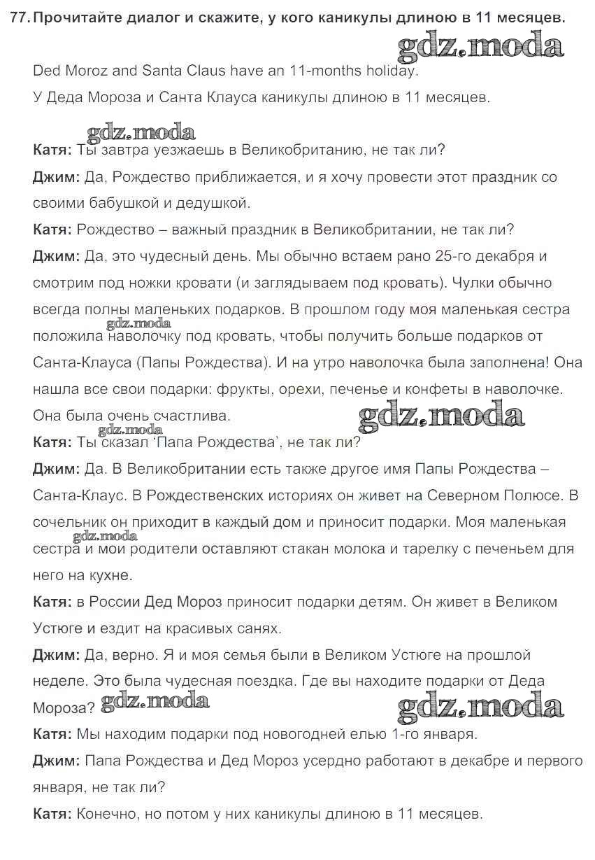 ОТВЕТ на задание № 77 Учебник по Английскому языку 5 класс Биболетова Enjoy English
