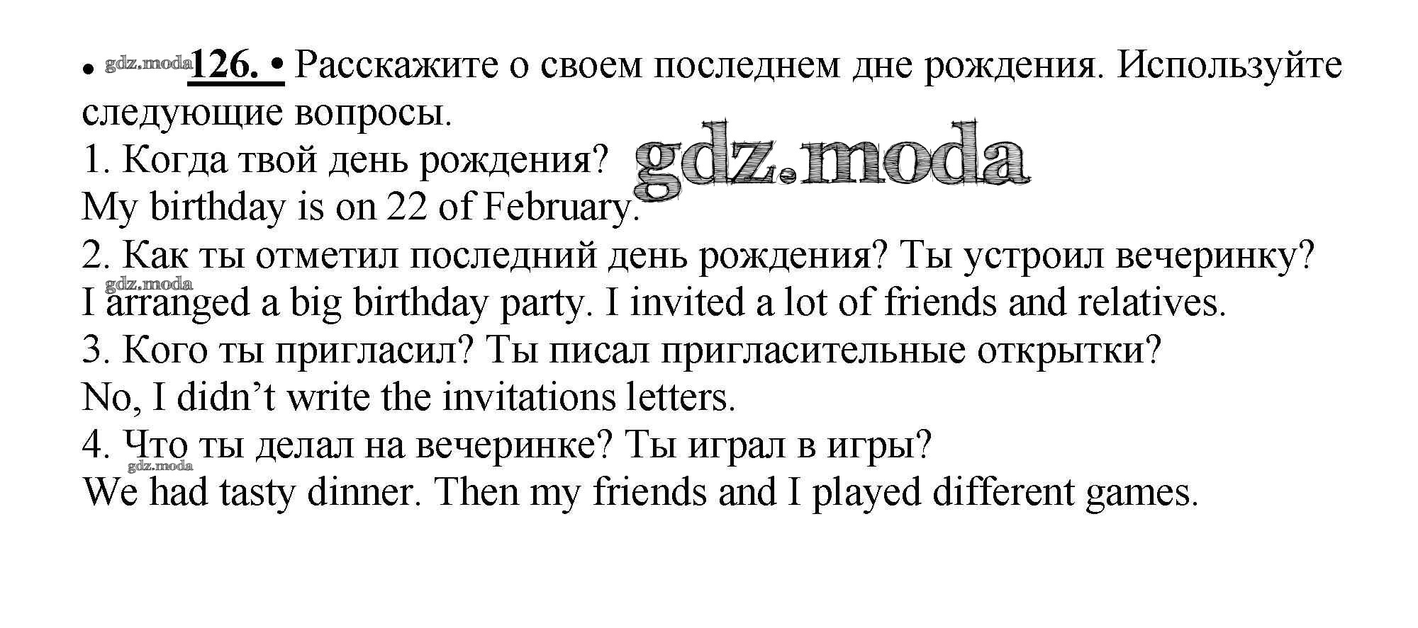 ОТВЕТ на задание № 126 Учебник по Английскому языку 5 класс Биболетова Enjoy English